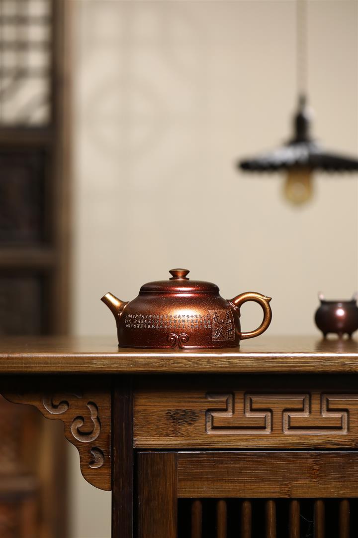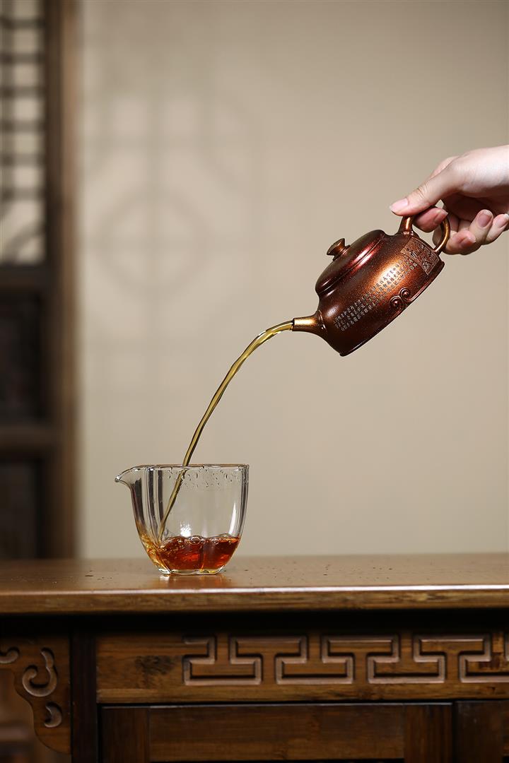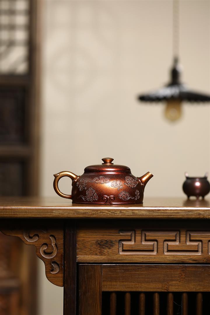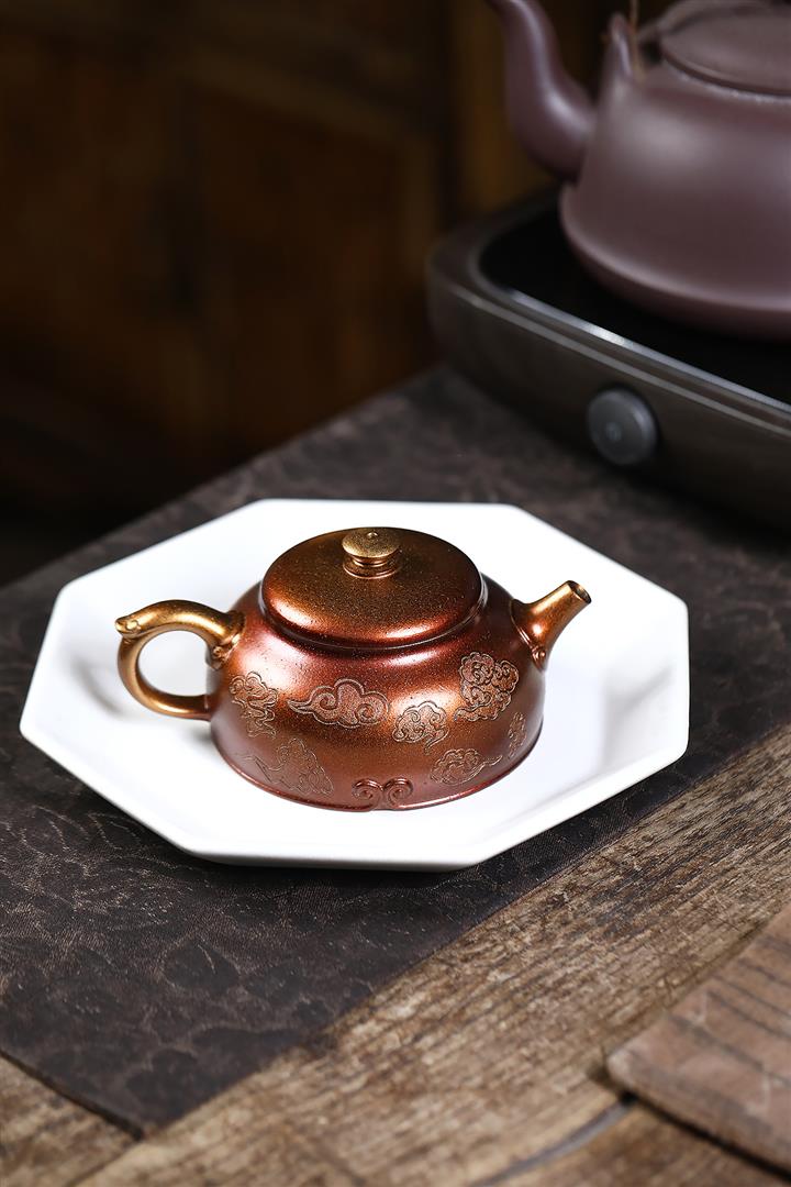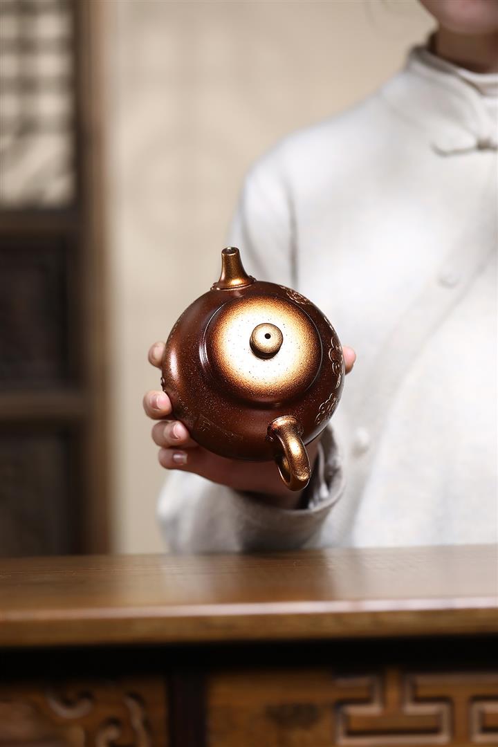 【泥料特點】砂土氣重,似淳實農民,日久使用,漸露鋒芒,養成變化,溫潤莊重。紫砂是壹種雙重氣孔結構的多孔性材質,氣孔微細,密度高。用紫砂壺沏茶,不失原味,且香不渙散,得茶之真香真味。紫砂使用越久,壺身色澤越發光亮照人,氣韻溫雅。紫砂壺長久使用器身會因撫摸擦拭,變得越發溫潤光澤。