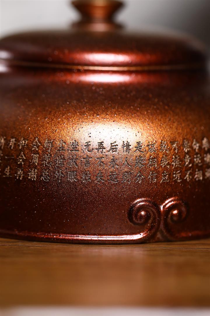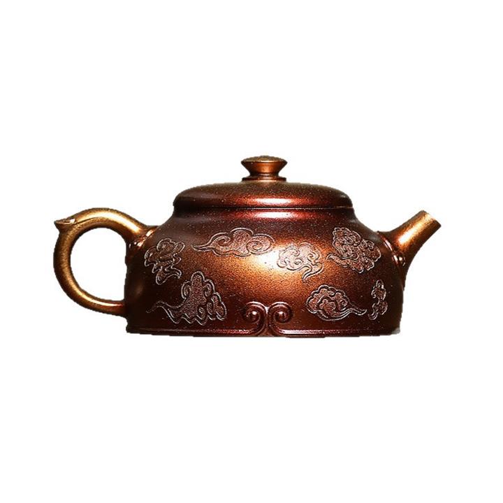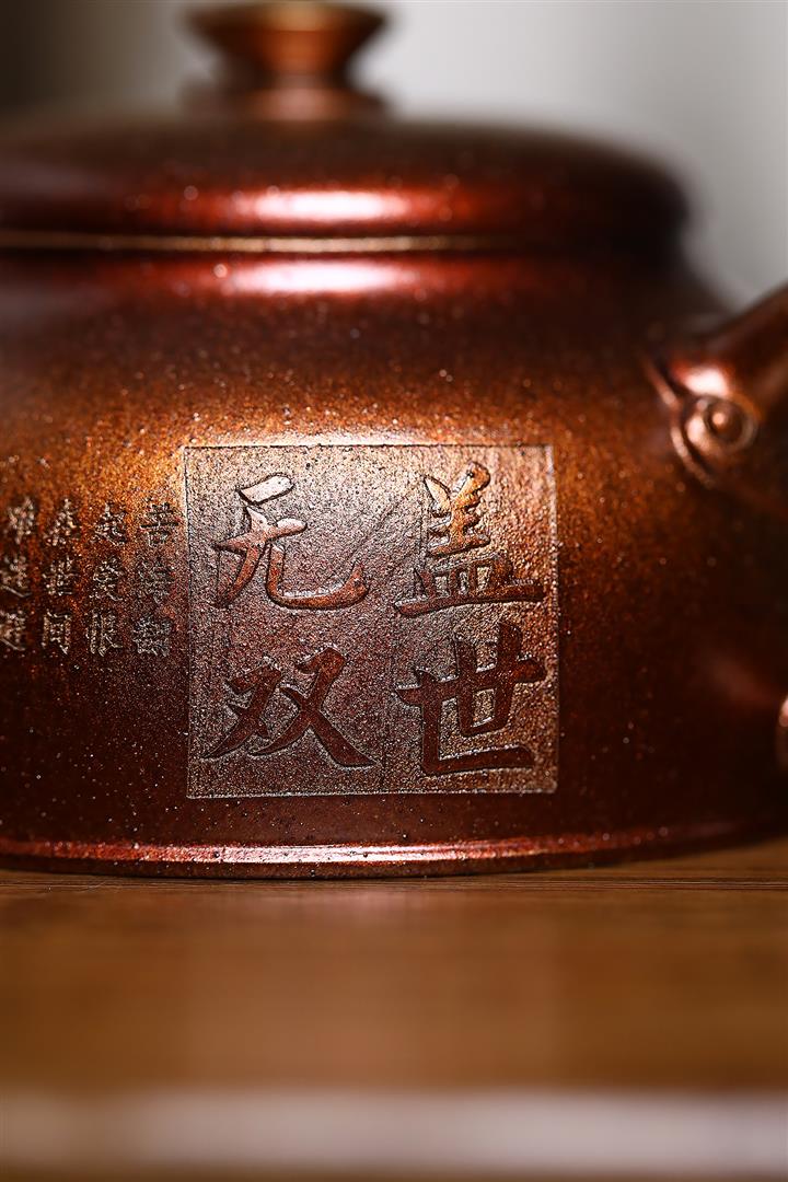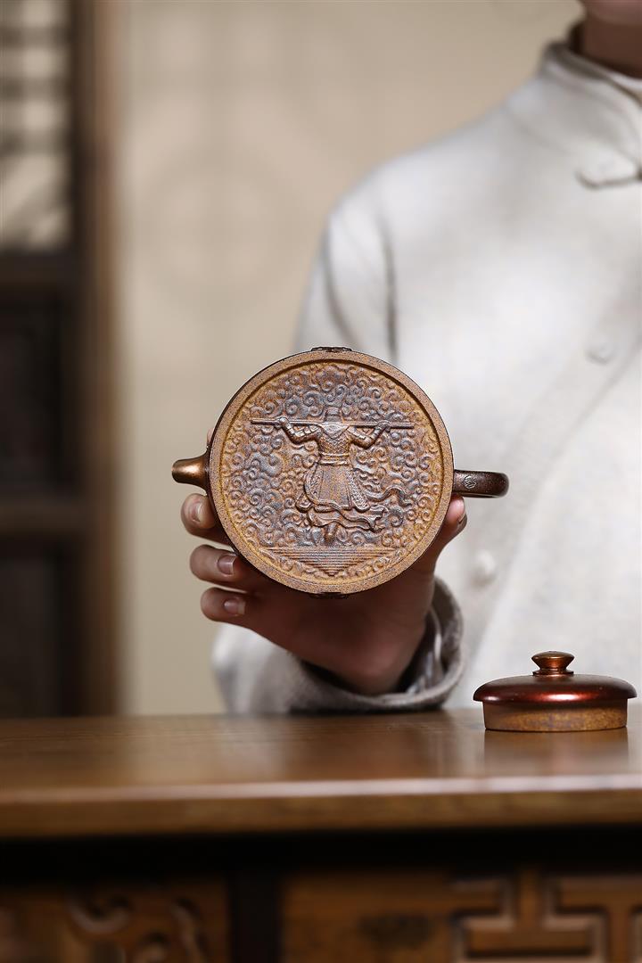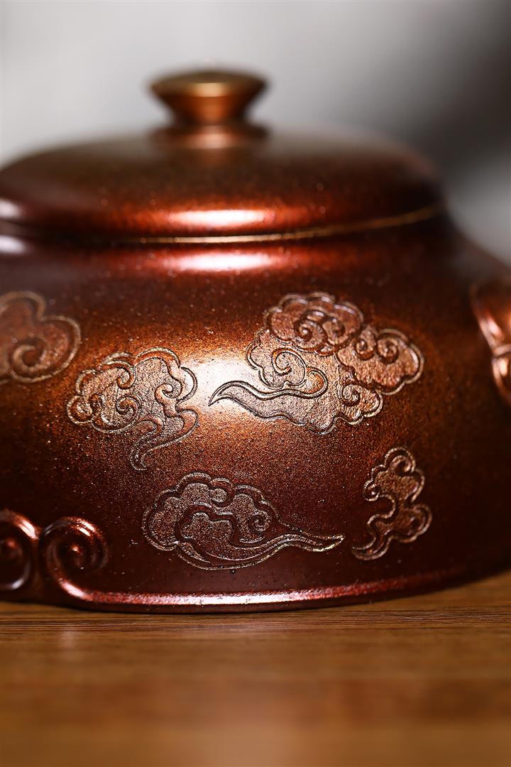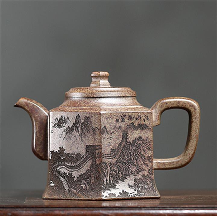 320cc原礦古烏泥萬裏長城彩刻伏虎茶壺POT8723