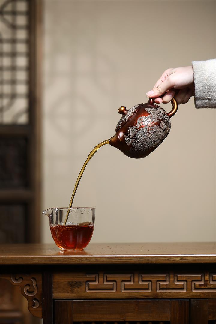 【泥料特點】砂土氣重,似淳實農民,日久使用,漸露鋒芒,養成變化,溫潤莊重。紫砂是壹種雙重氣孔結構的多孔性材質,氣孔微細,密度高。用紫砂壺沏茶,不失原味,且香不渙散,得茶之真香真味。紫砂使用越久,壺身色澤越發光亮照人,氣韻溫雅。紫砂壺長久使用器身會因撫摸擦拭,變得越發溫潤光澤。