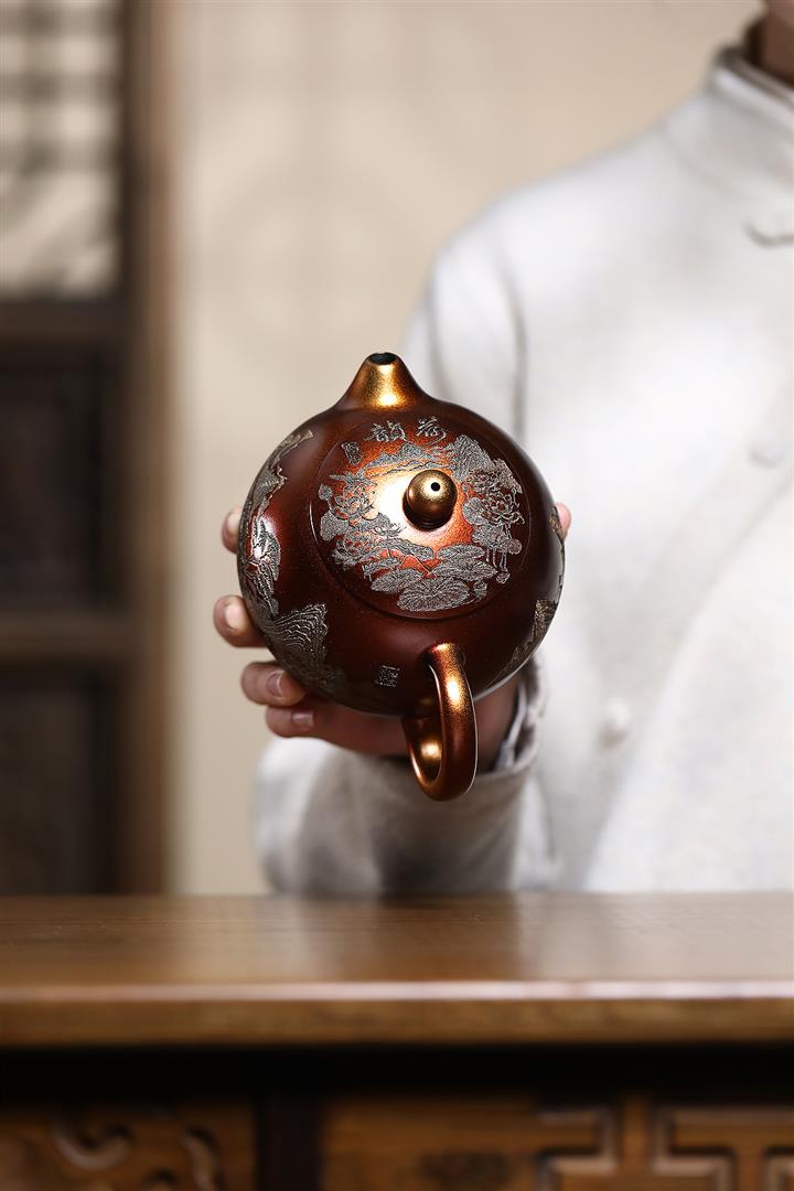 220cc原礦大紅袍描金金福龍蛋茶壺POT8727