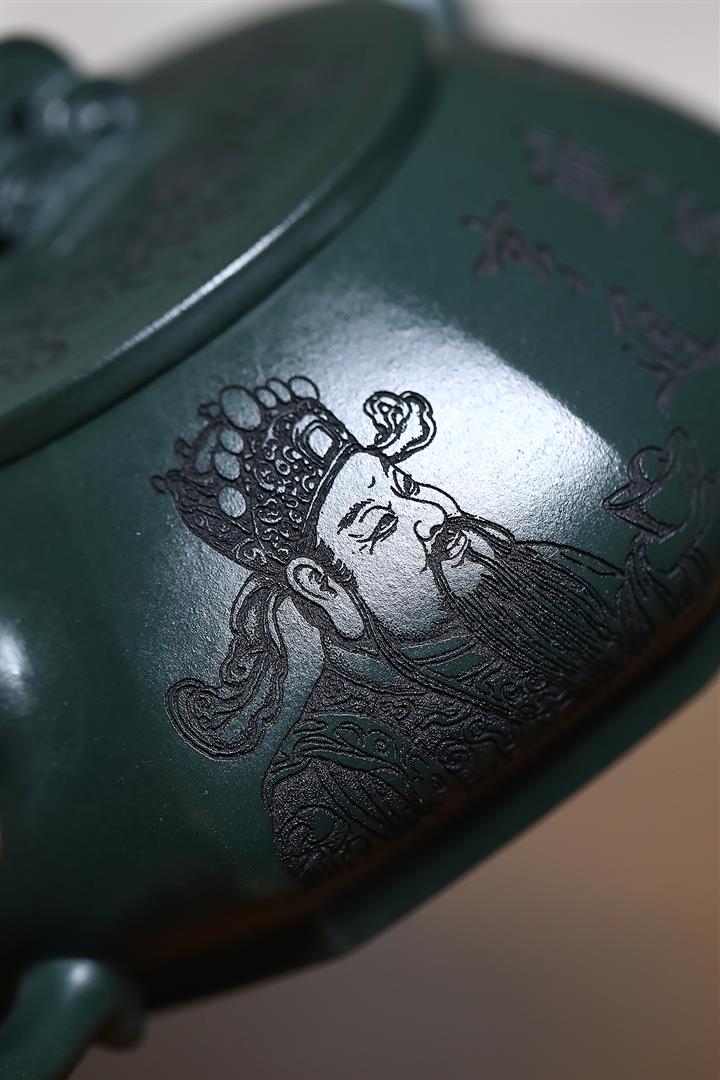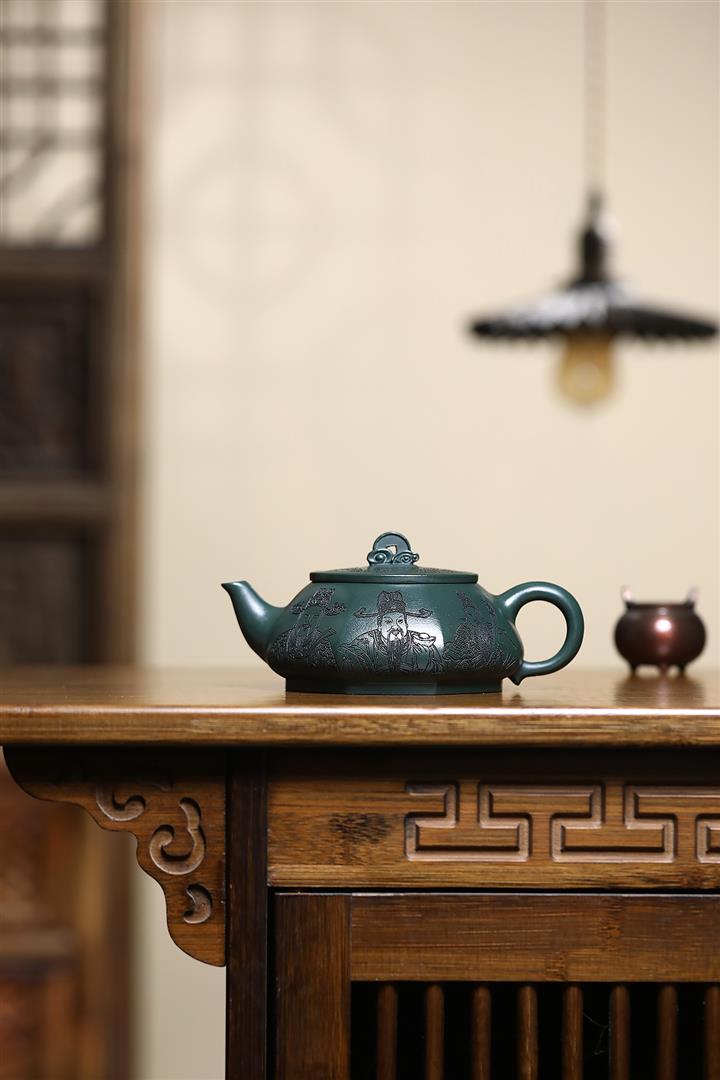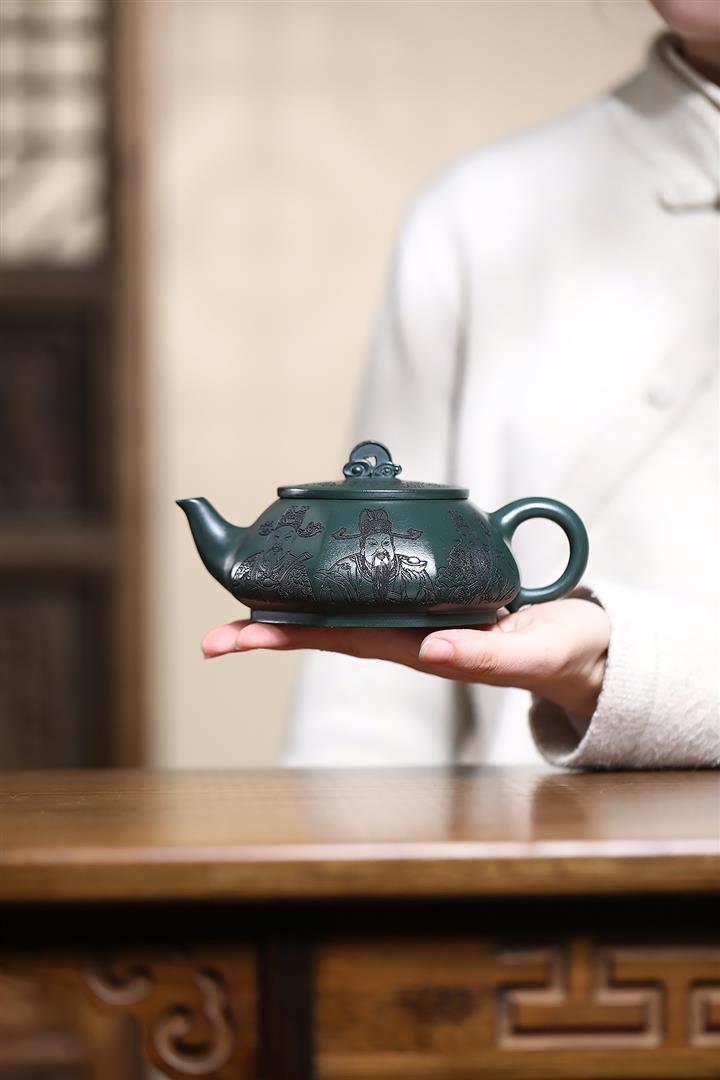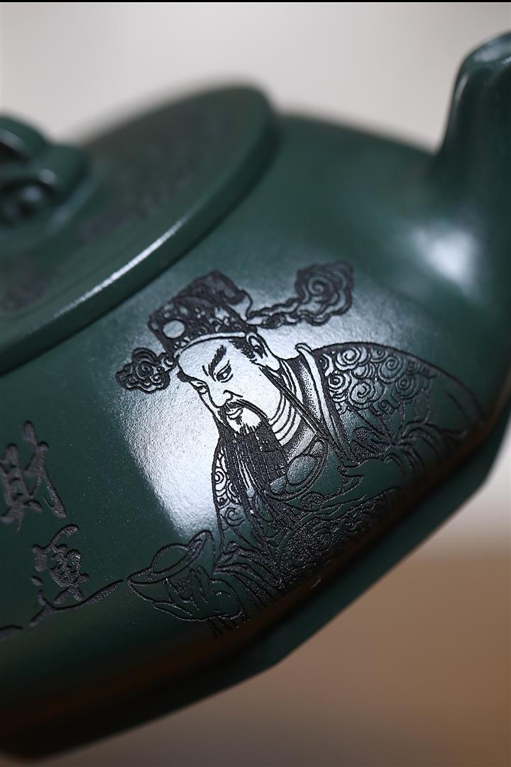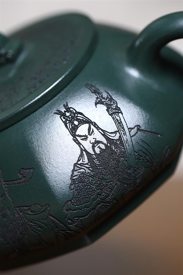 320cc原礦古烏泥萬裏長城彩刻伏虎茶壺POT8723