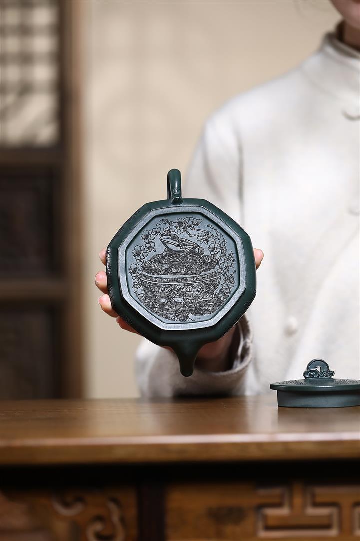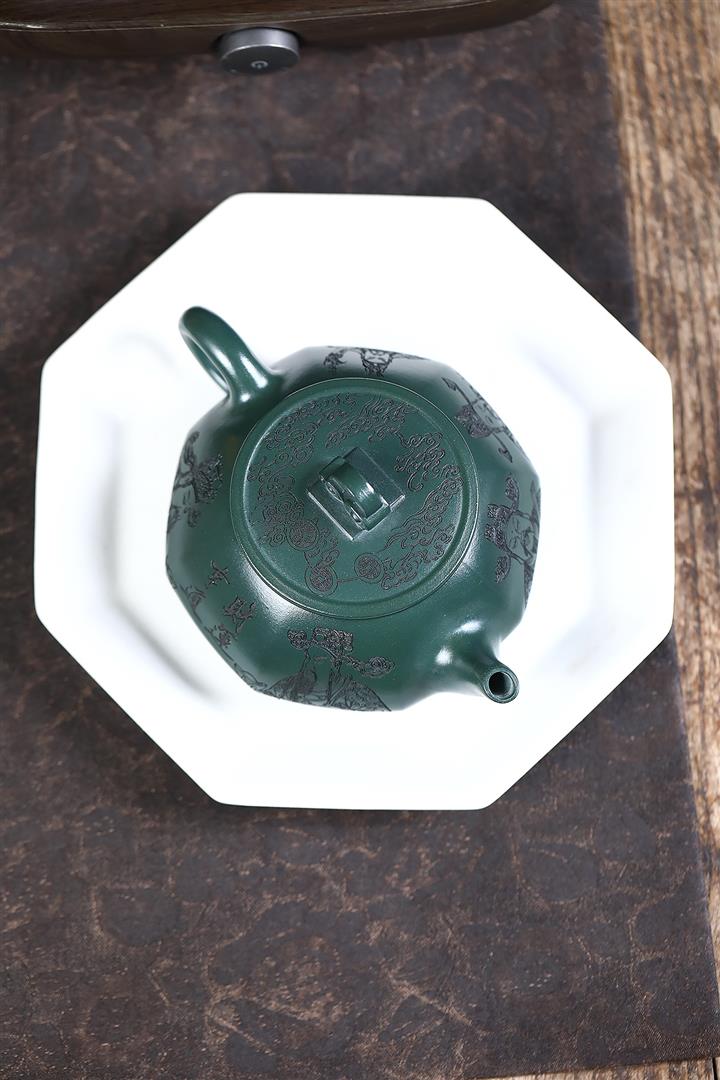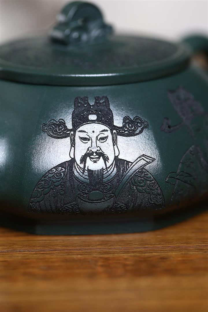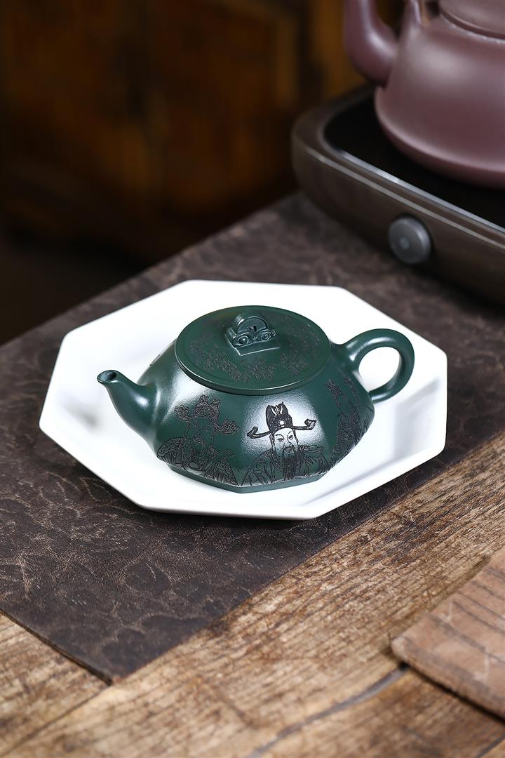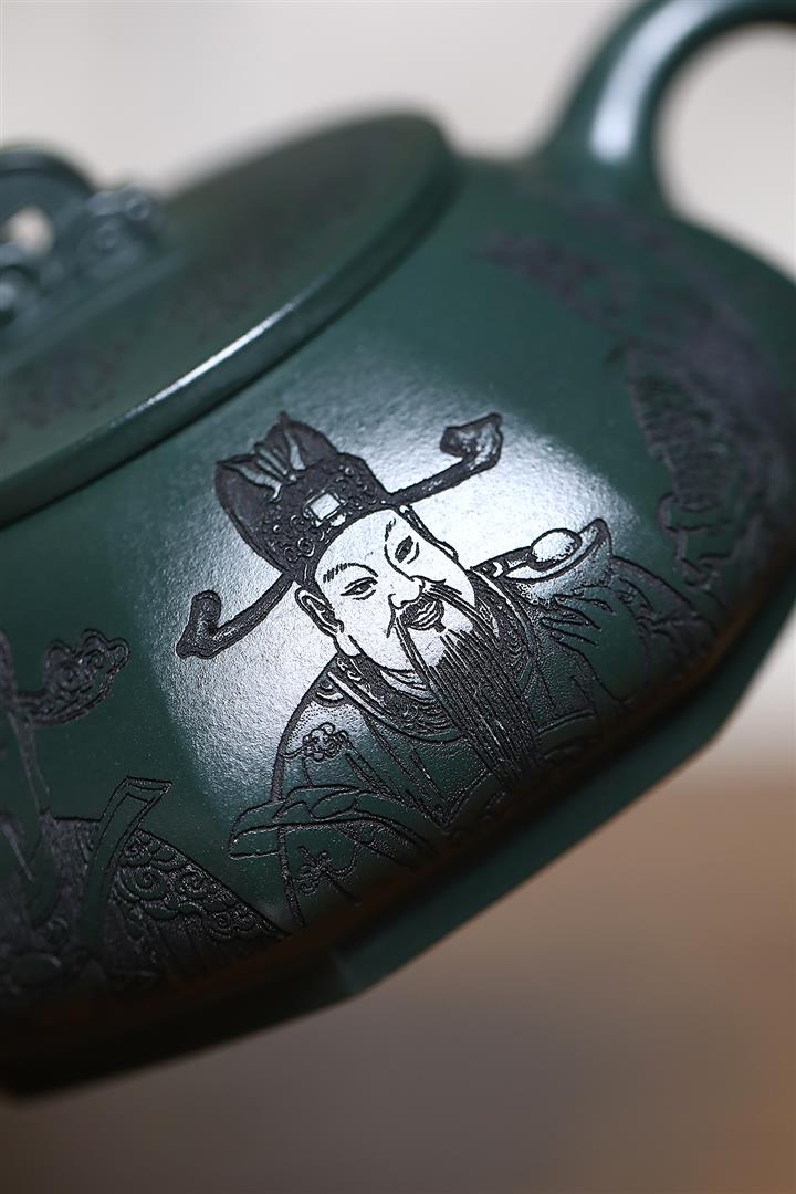 320cc原礦古烏泥萬裏長城彩刻伏虎茶壺POT8723