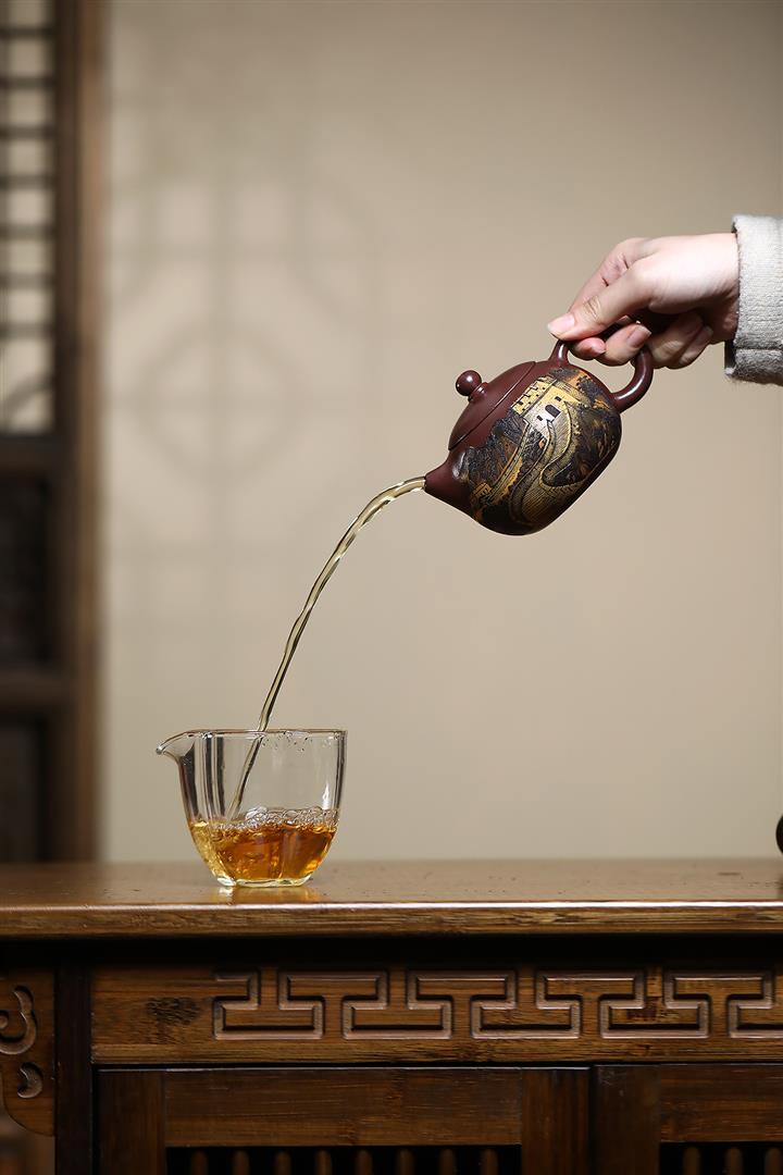 【泥料特點】砂土氣重,似淳實農民,日久使用,漸露鋒芒,養成變化,溫潤莊重。紫砂是壹種雙重氣孔結構的多孔性材質,氣孔微細,密度高。用紫砂壺沏茶,不失原味,且香不渙散,得茶之真香真味。紫砂使用越久,壺身色澤越發光亮照人,氣韻溫雅。紫砂壺長久使用器身會因撫摸擦拭,變得越發溫潤光澤。