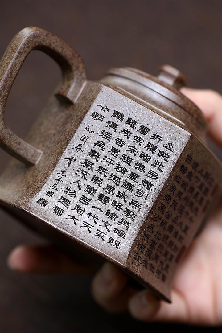 280cc原礦紫泥蛇紋鎏金八方秦權泡茶壺POT8739