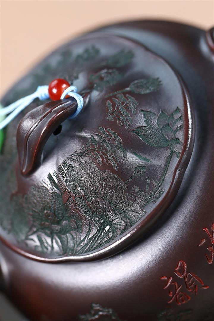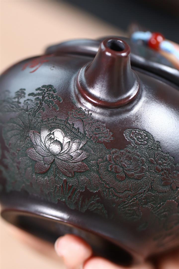 500cc原礦古紅泥鏤空遊龍戲鳳泡茶壺POT8738