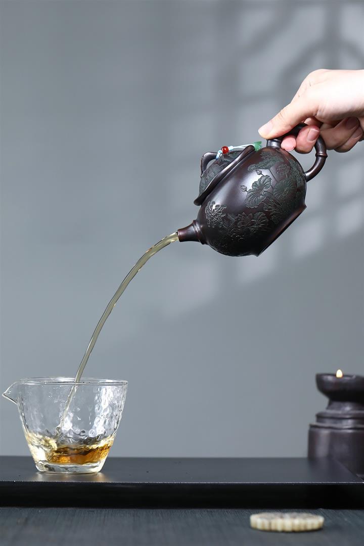 【泥料特點】砂土氣重,似淳實農民,日久使用,漸露鋒芒,養成變化,溫潤莊重。紫砂是壹種雙重氣孔結構的多孔性材質,氣孔微細,密度高。用紫砂壺沏茶,不失原味,且香不渙散,得茶之真香真味。紫砂使用越久,壺身色澤越發光亮照人,氣韻溫雅。紫砂壺長久使用器身會因撫摸擦拭,變得越發溫潤光澤。