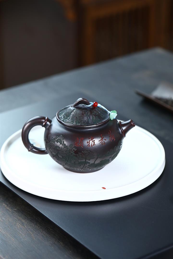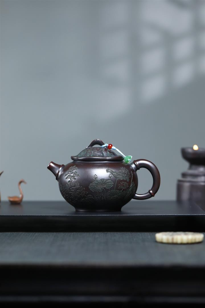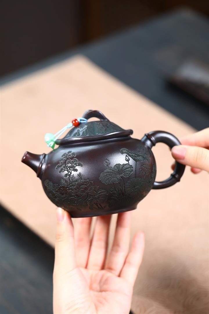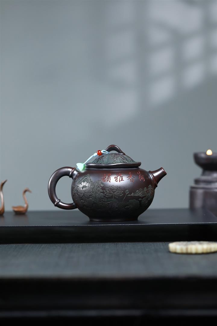 【作品介紹】此款壺形線條流暢,壺把,壺嘴,壺身壹氣呵成栩栩如生,是收藏把玩的好壺,泥料色澤古樸典雅,日久使用,漸露鋒芒,養成變化快,溫潤莊重,用其泡茶,使用的年代久,壺身就溫潤,泡出來的茶湯也就醇郁芳馨。