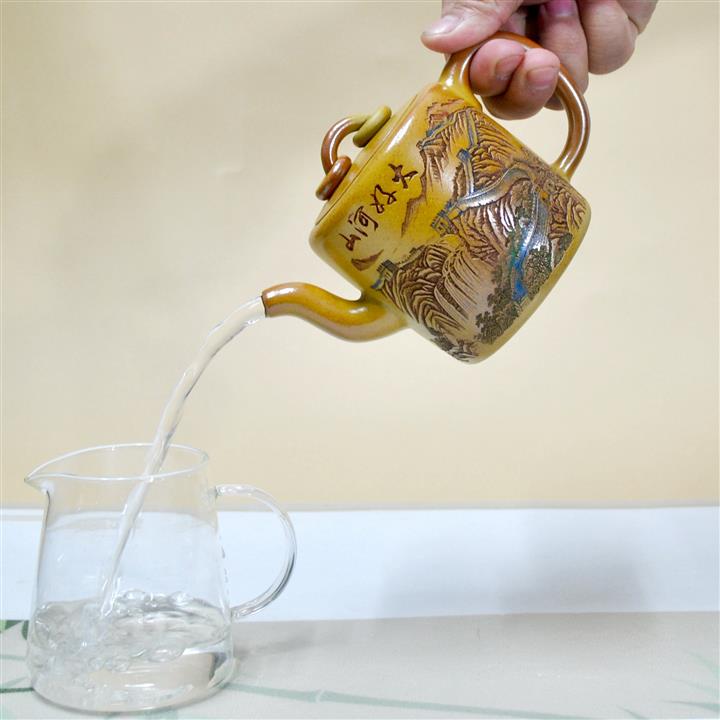 【泥料特點】砂土氣重,似淳實農民,日久使用,漸露鋒芒,養成變化,溫潤莊重。紫砂是壹種雙重氣孔結構的多孔性材質,氣孔微細,密度高。用紫砂壺沏茶,不失原味,且香不渙散,得茶之真香真味。紫砂使用越久,壺身色澤越發光亮照人,氣韻溫雅。紫砂壺長久使用器身會因撫摸擦拭,變得越發溫潤光澤。