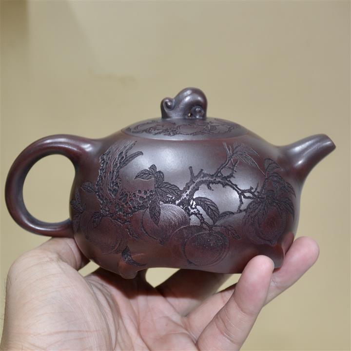 500cc原礦古紅泥鏤空遊龍戲鳳泡茶壺POT8738