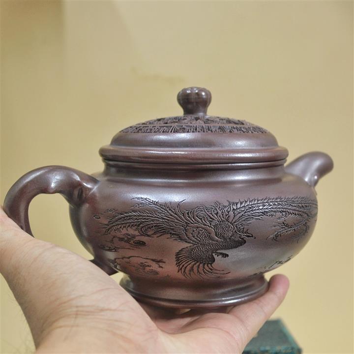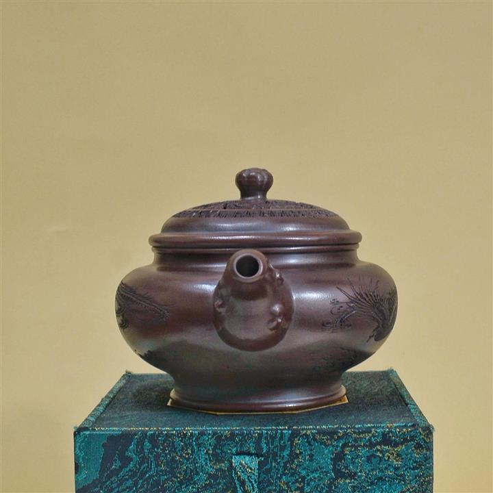 500cc原礦古紅泥鏤空遊龍戲鳳泡茶壺POT8738