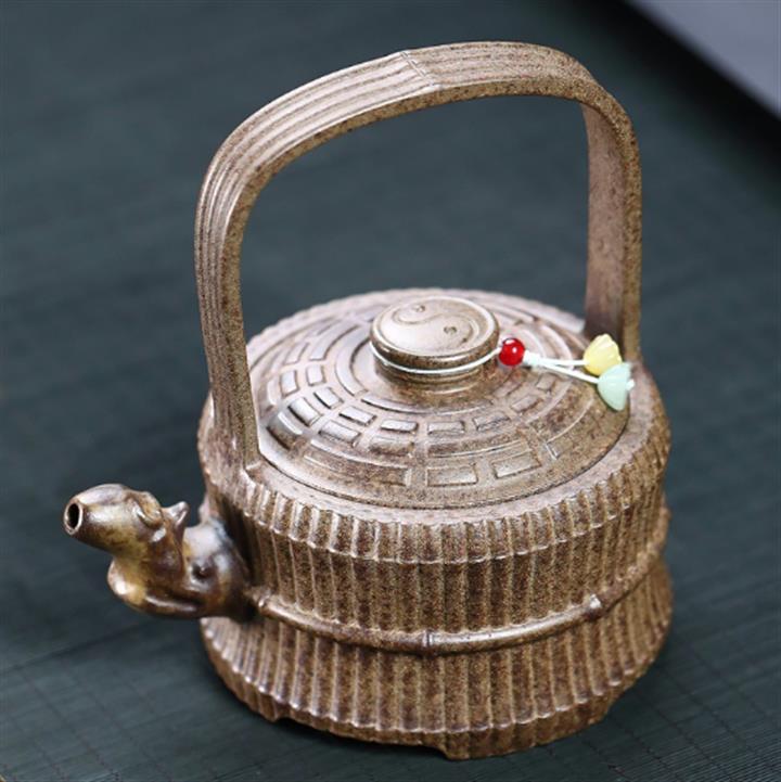 380cc原礦沈香泥柴燒縛竹提梁大茶壺POT8751