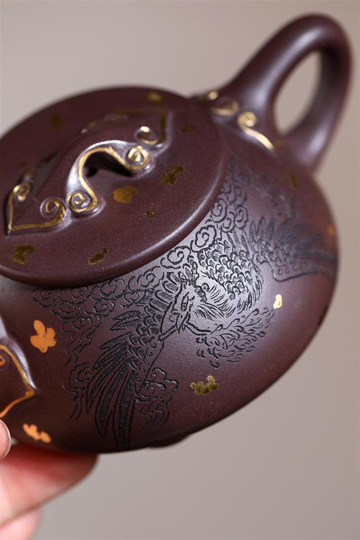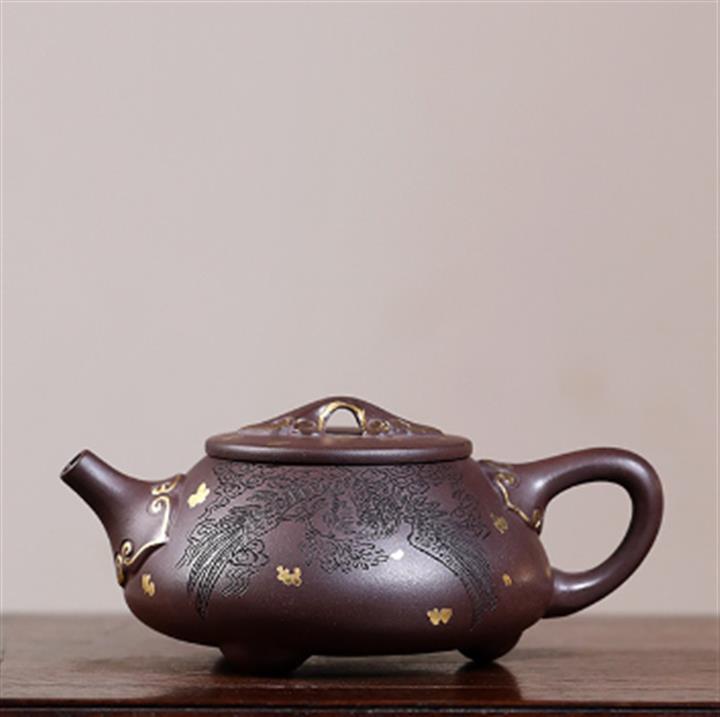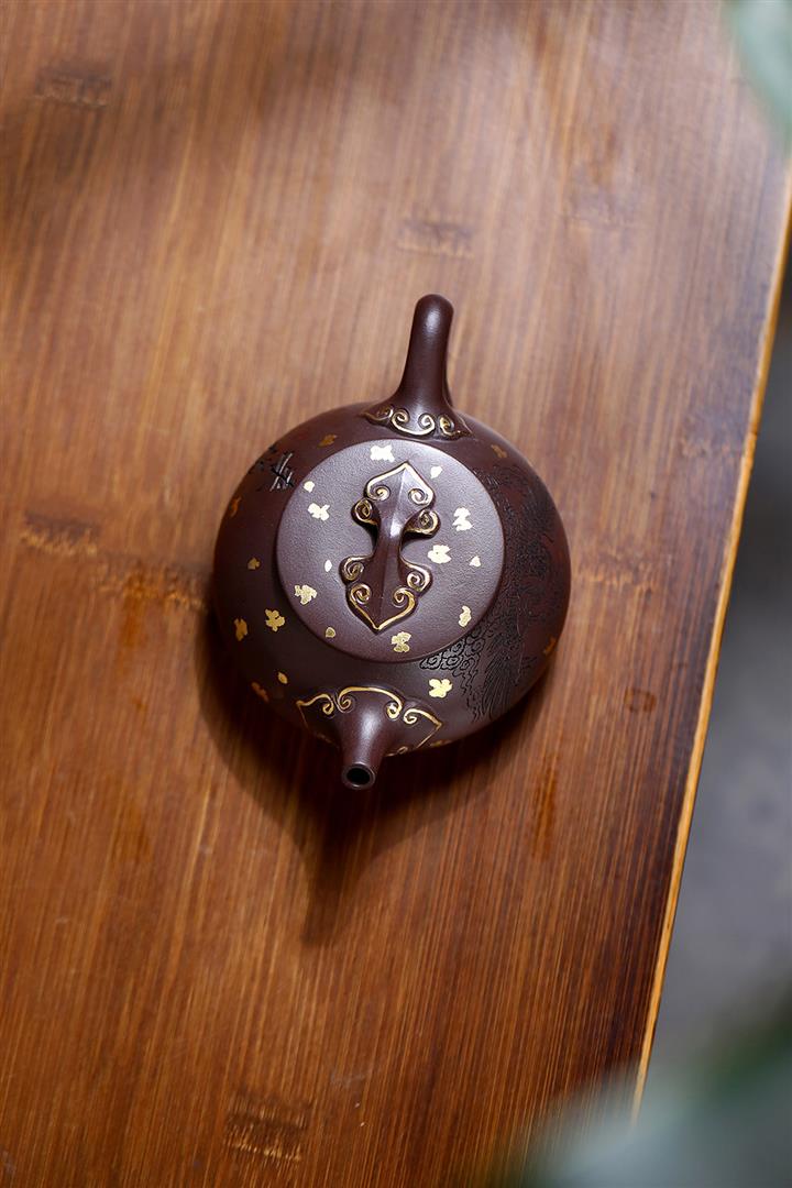190cc原礦黃金段泥焰裏蝶華礎瓢茶壺POT8748