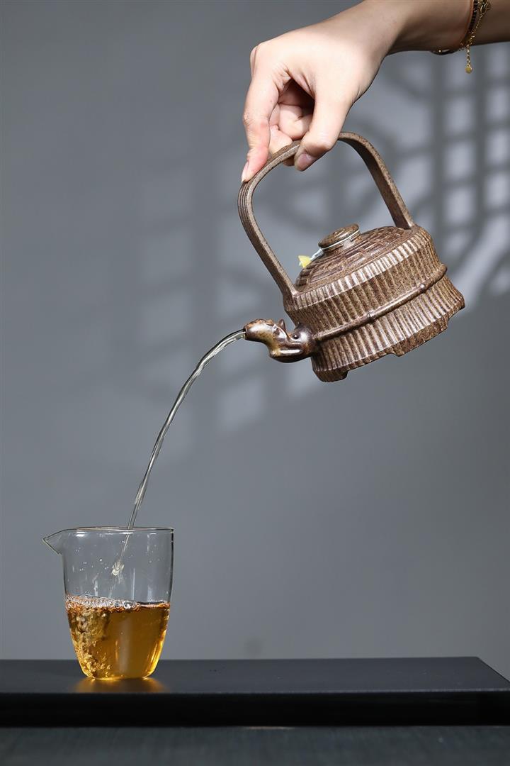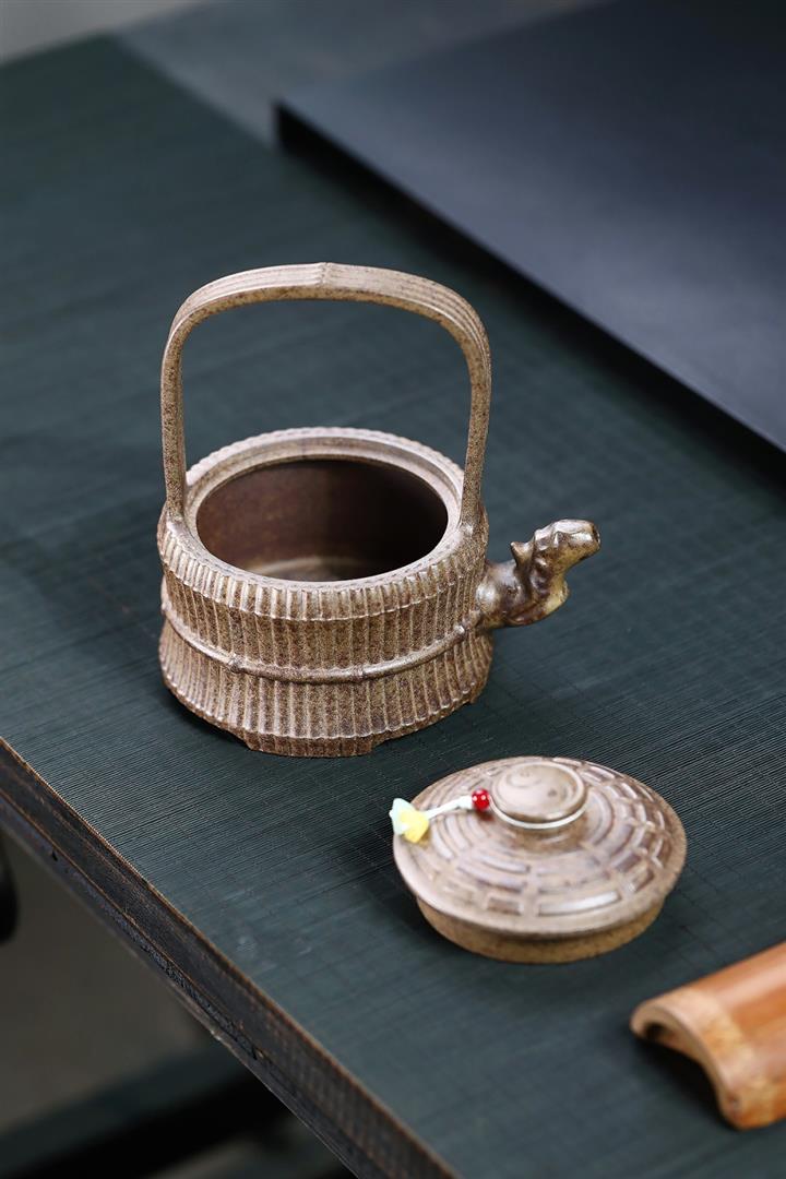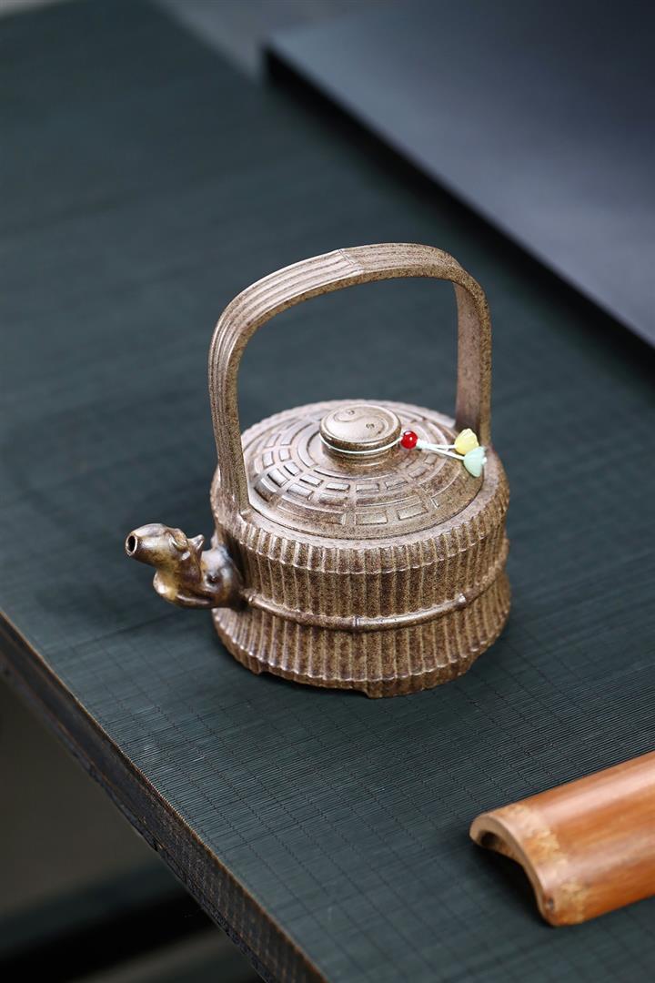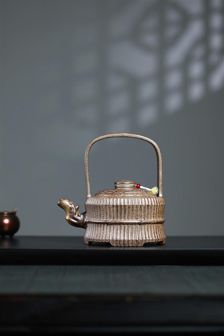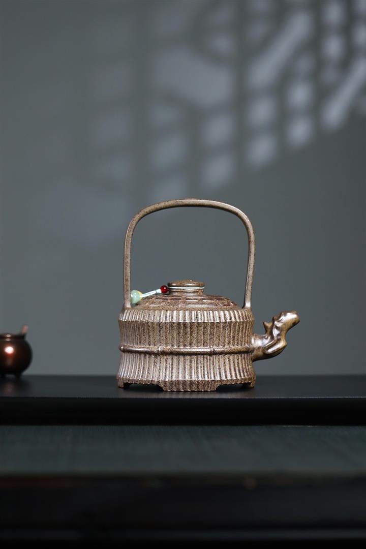 380cc原礦沈香泥柴燒縛竹提梁大茶壺POT8751