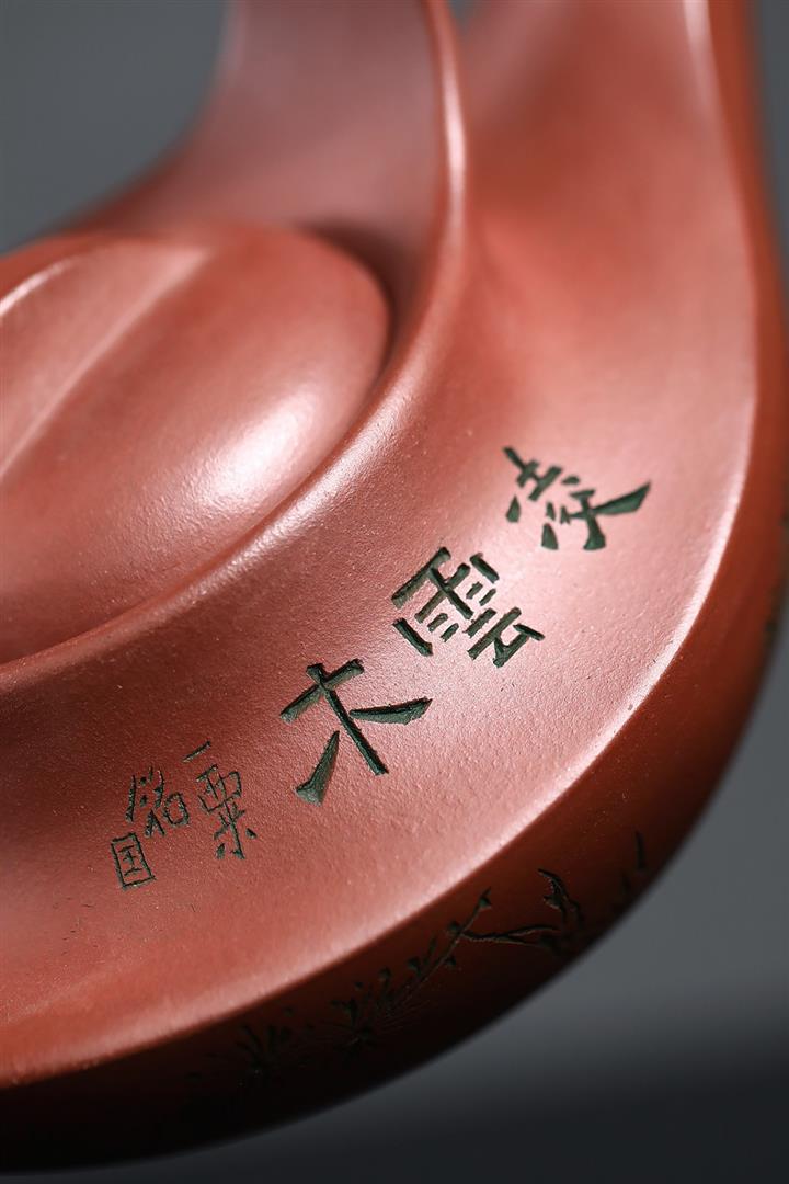 【泥料特點】砂土氣重,似淳實農民,日久使用,漸露鋒芒,養成變化,溫潤莊重。紫砂是壹種雙重氣孔結構的多孔性材質,氣孔微細,密度高。用紫砂壺沏茶,不失原味,且香不渙散,得茶之真香真味。紫砂使用越久,壺身色澤越發光亮照人,氣韻溫雅。紫砂壺長久使用器身會因撫摸擦拭,變得越發溫潤光澤。