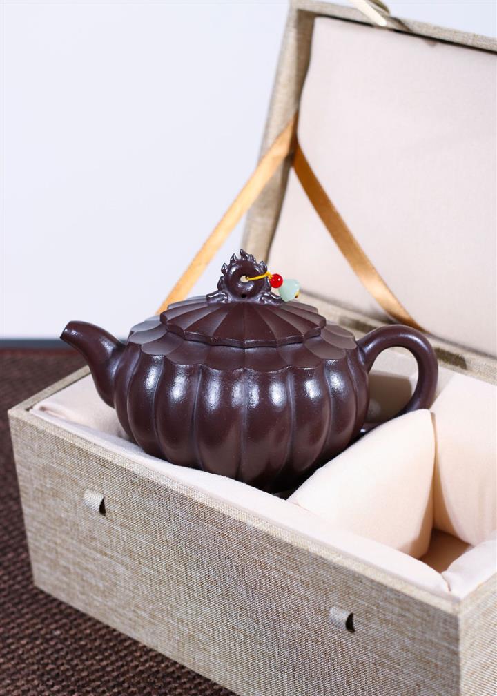 【泥料特點】砂土氣重,似淳實農民,日久使用,漸露鋒芒,養成變化,溫潤莊重。紫砂是壹種雙重氣孔結構的多孔性材質,氣孔微細,密度高。用紫砂壺沏茶,不失原味,且香不渙散,得茶之真香真味。紫砂使用越久,壺身色澤越發光亮照人,氣韻溫雅。紫砂壺長久使用器身會因撫摸擦拭,變得越發溫潤光澤。