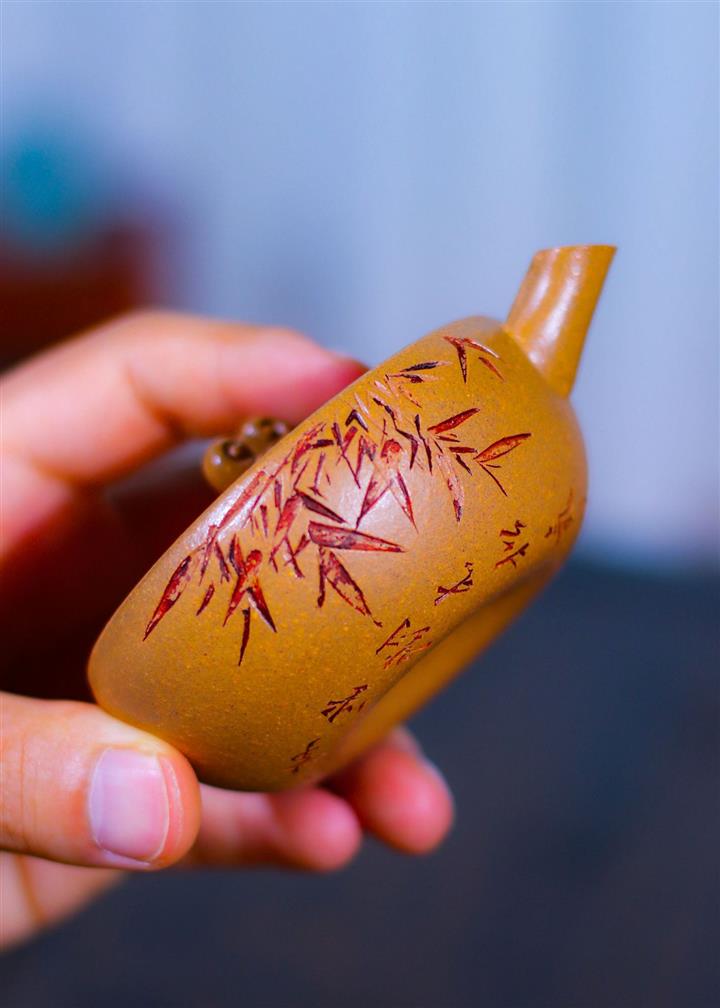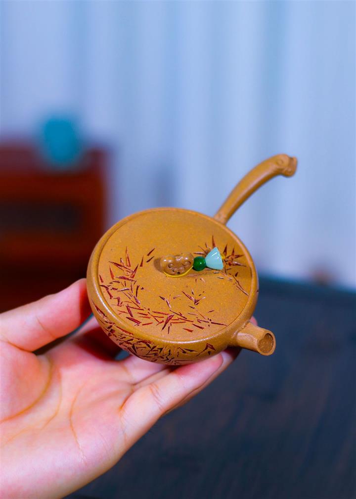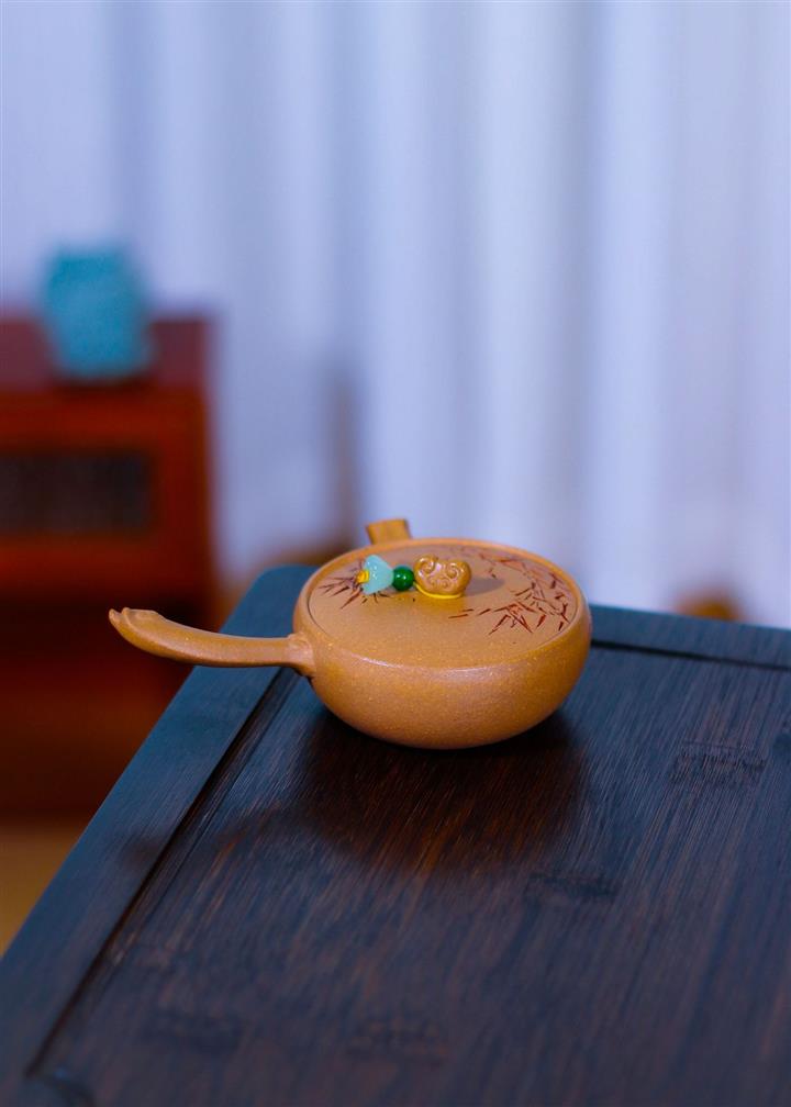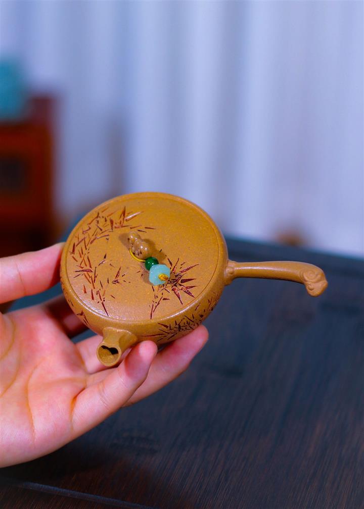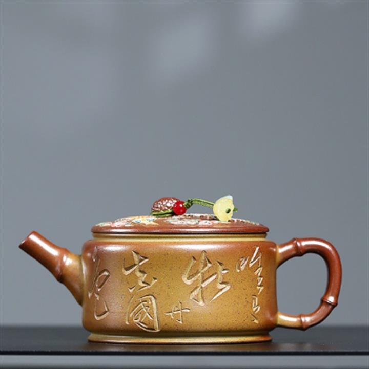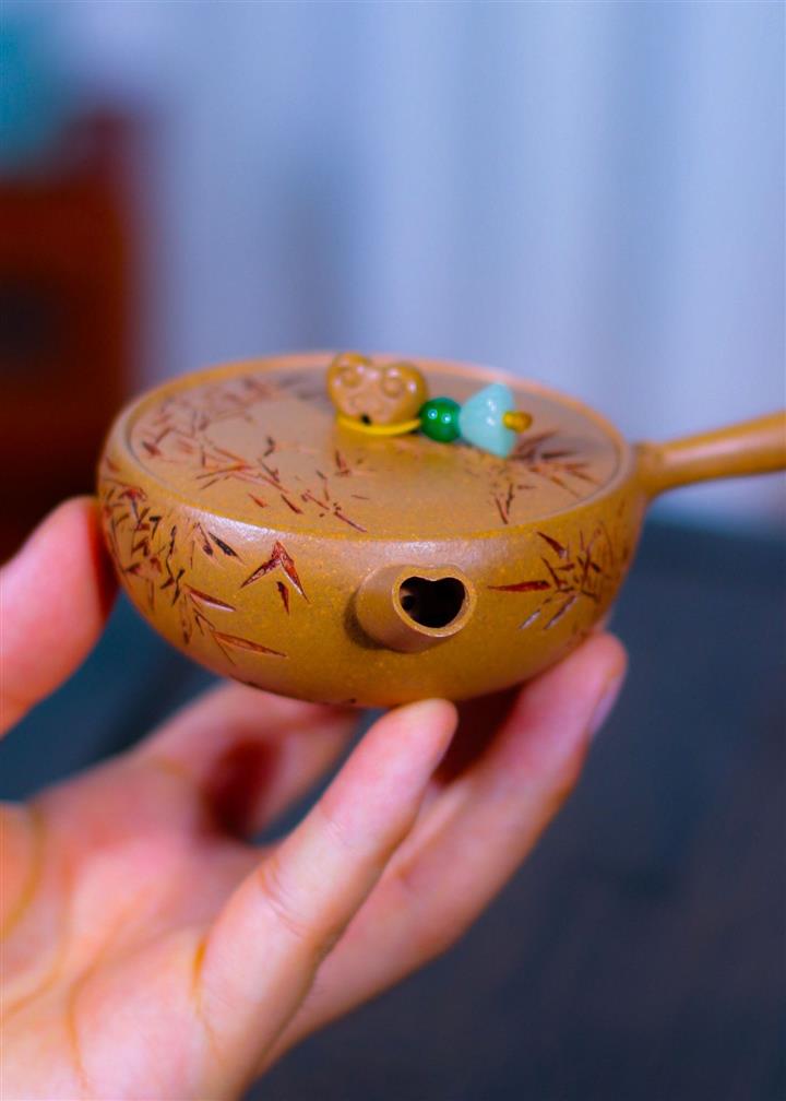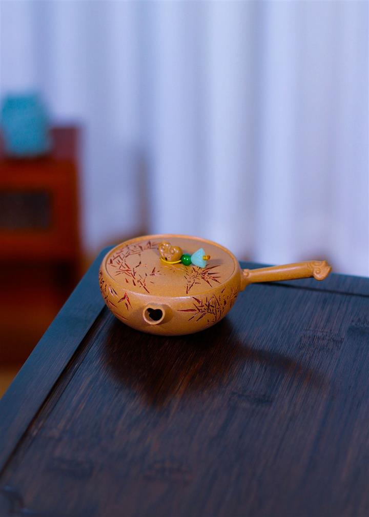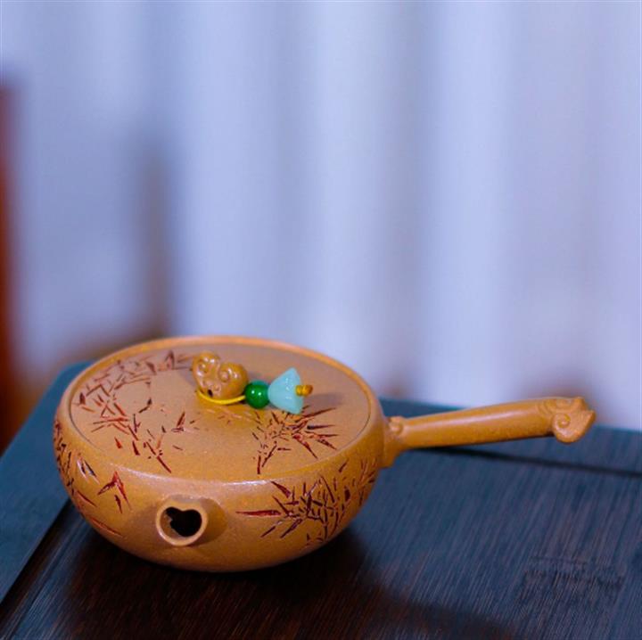 80cc原礦黃金段泥竹影唐羽側把茶壺POT8759