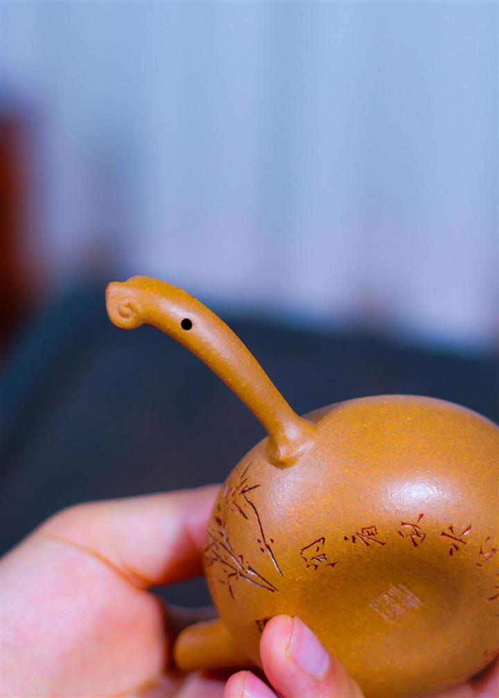 【作品介紹】此款壺形線條流暢,壺把,壺嘴,壺身壹氣呵成栩栩如生,是收藏把玩的好壺,泥料色澤古樸典雅,日久使用,漸露鋒芒,養成變化快,溫潤莊重,用其泡茶,使用的年代久,壺身就溫潤,泡出來的茶湯也就醇郁芳馨。