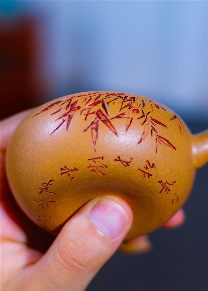 【泥料特點】砂土氣重,似淳實農民,日久使用,漸露鋒芒,養成變化,溫潤莊重。紫砂是壹種雙重氣孔結構的多孔性材質,氣孔微細,密度高。用紫砂壺沏茶,不失原味,且香不渙散,得茶之真香真味。紫砂使用越久,壺身色澤越發光亮照人,氣韻溫雅。紫砂壺長久使用器身會因撫摸擦拭,變得越發溫潤光澤。
