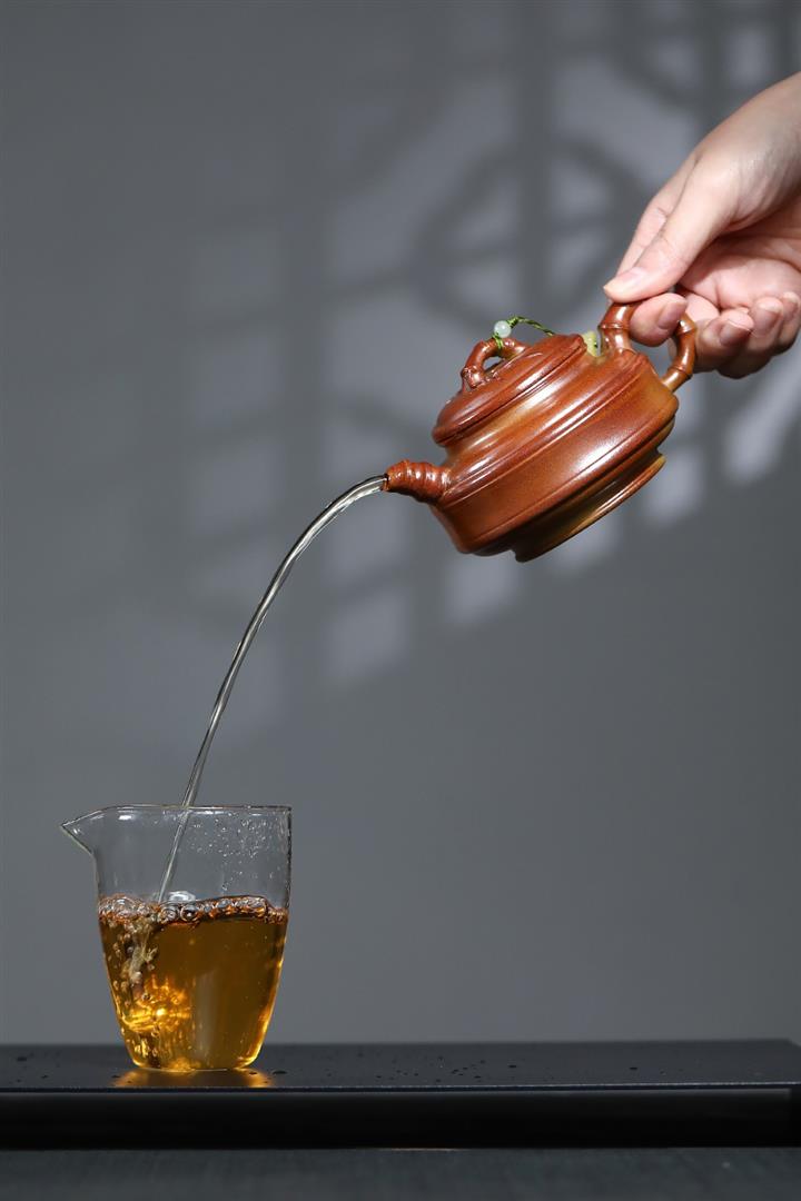【泥料特點】砂土氣重,似淳實農民,日久使用,漸露鋒芒,養成變化,溫潤莊重。紫砂是壹種雙重氣孔結構的多孔性材質,氣孔微細,密度高。用紫砂壺沏茶,不失原味,且香不渙散,得茶之真香真味。紫砂使用越久,壺身色澤越發光亮照人,氣韻溫雅。紫砂壺長久使用器身會因撫摸擦拭,變得越發溫潤光澤。