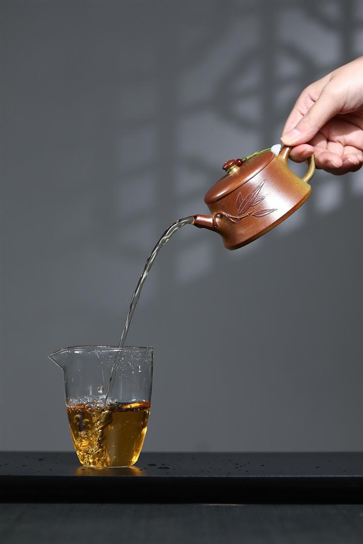 【泥料特點】砂土氣重,似淳實農民,日久使用,漸露鋒芒,養成變化,溫潤莊重。紫砂是壹種雙重氣孔結構的多孔性材質,氣孔微細,密度高。用紫砂壺沏茶,不失原味,且香不渙散,得茶之真香真味。紫砂使用越久,壺身色澤越發光亮照人,氣韻溫雅。紫砂壺長久使用器身會因撫摸擦拭,變得越發溫潤光澤。