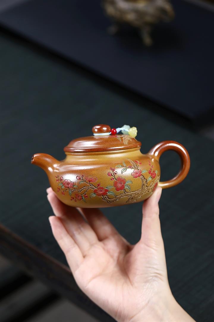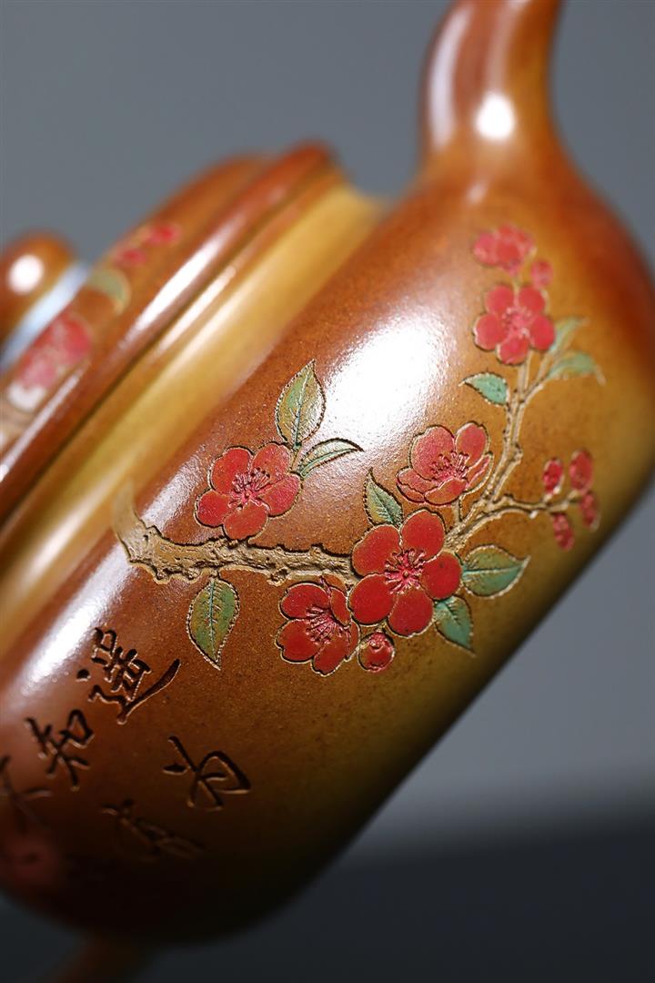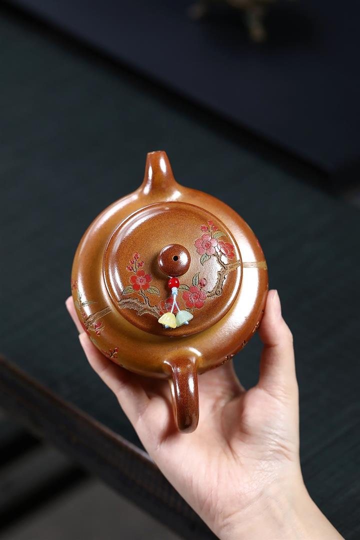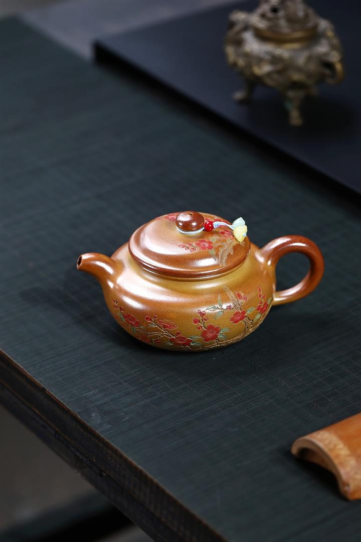 170cc原礦黃金段泥火焰燒金翎探梅茄瓜茶壺POT8764