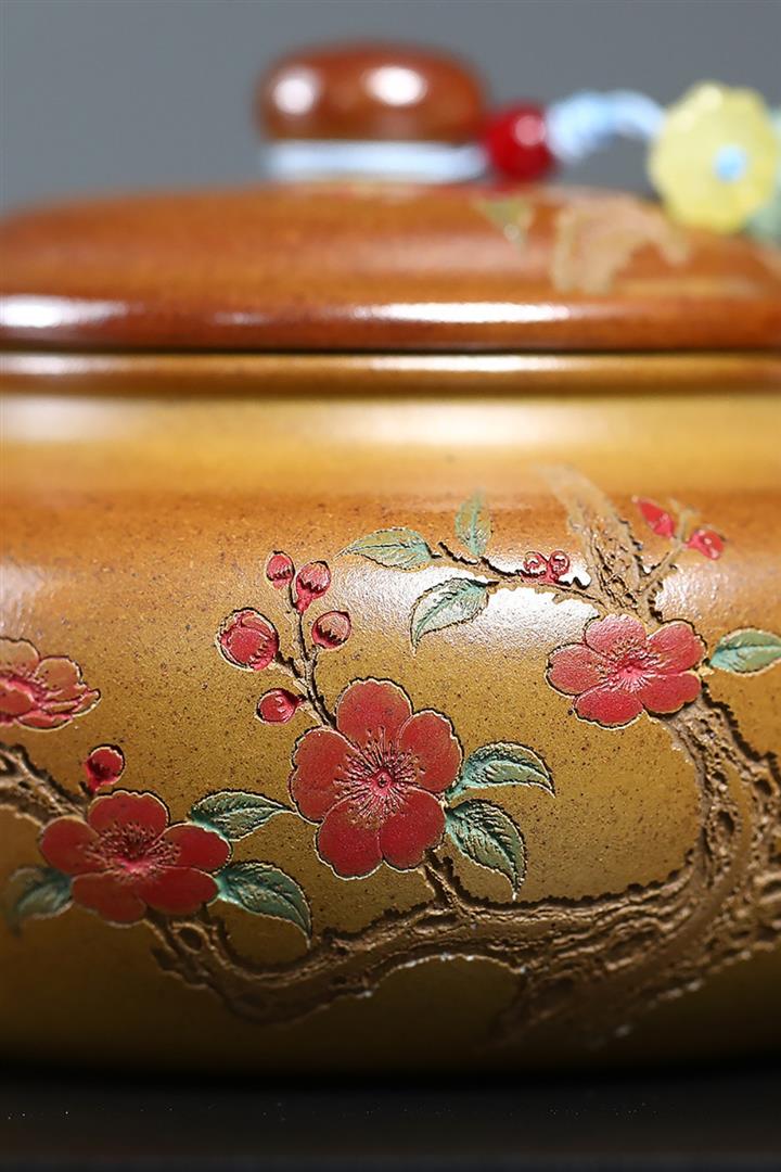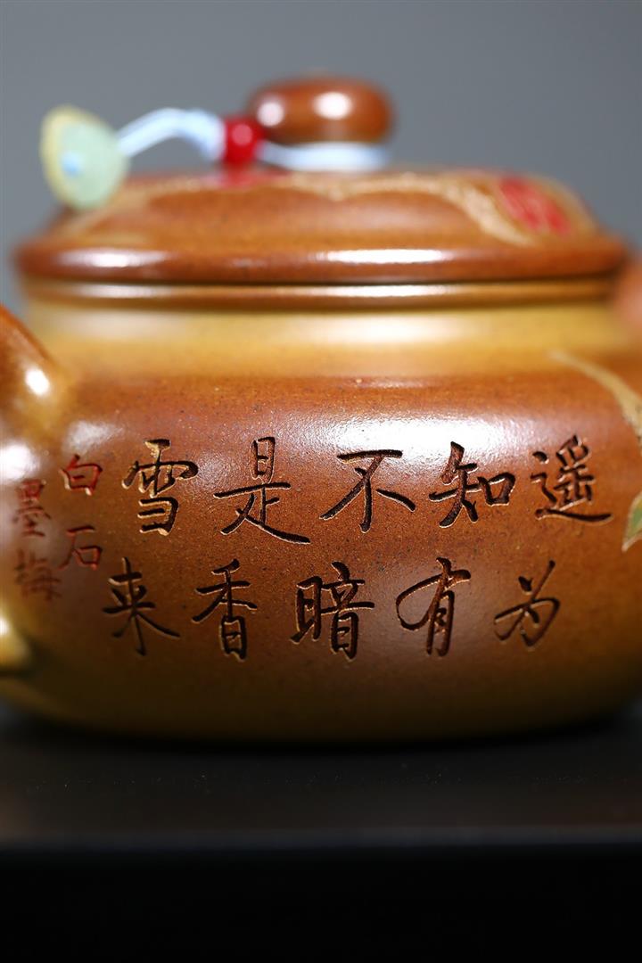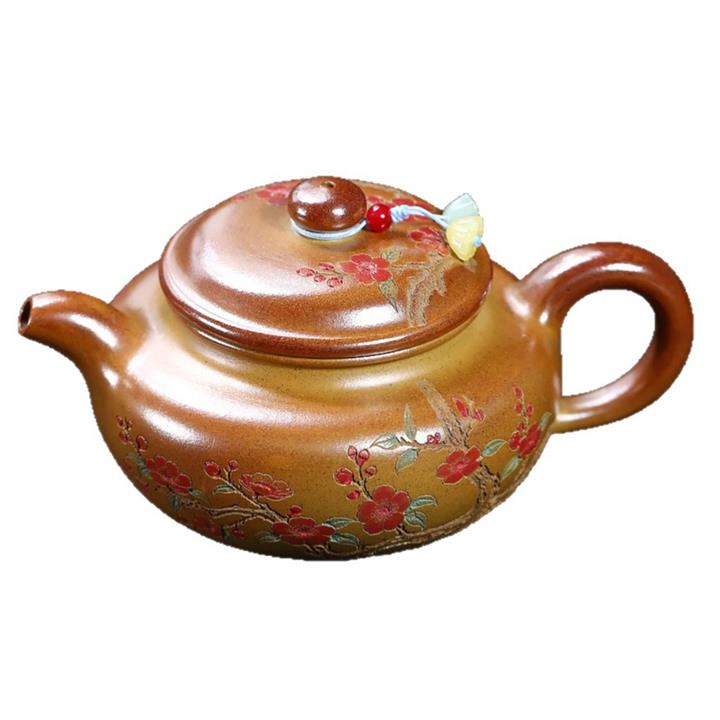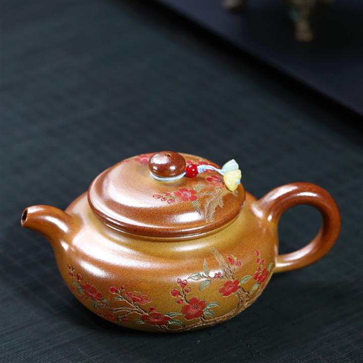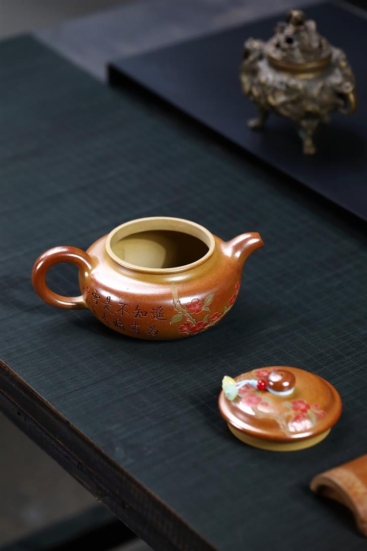 170cc原礦黃金段泥火焰燒金翎探梅茄瓜茶壺POT8764
