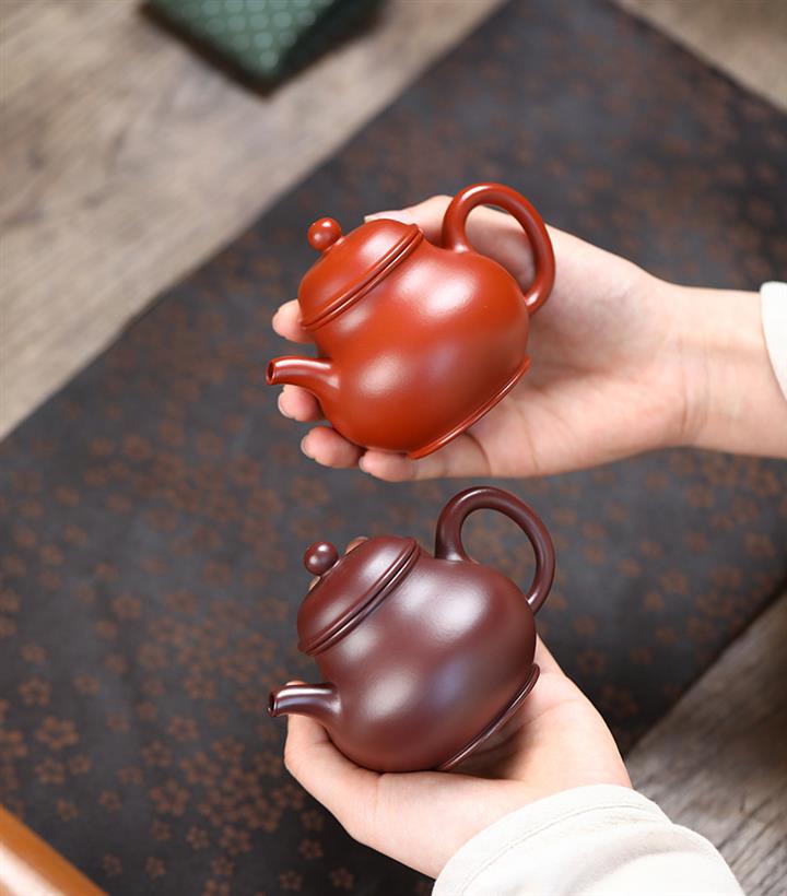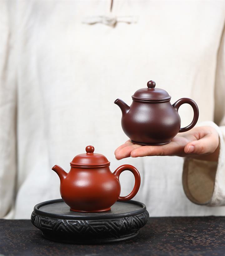 【泥料特點】砂土氣重,似淳實農民,日久使用,漸露鋒芒,養成變化,溫潤莊重。紫砂是壹種雙重氣孔結構的多孔性材質,氣孔微細,密度高。用紫砂壺沏茶,不失原味,且香不渙散,得茶之真香真味。紫砂使用越久,壺身色澤越發光亮照人,氣韻溫雅。紫砂壺長久使用器身會因撫摸擦拭,變得越發溫潤光澤。