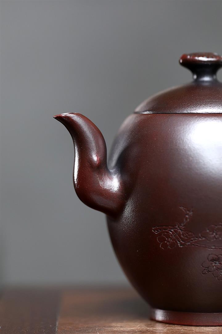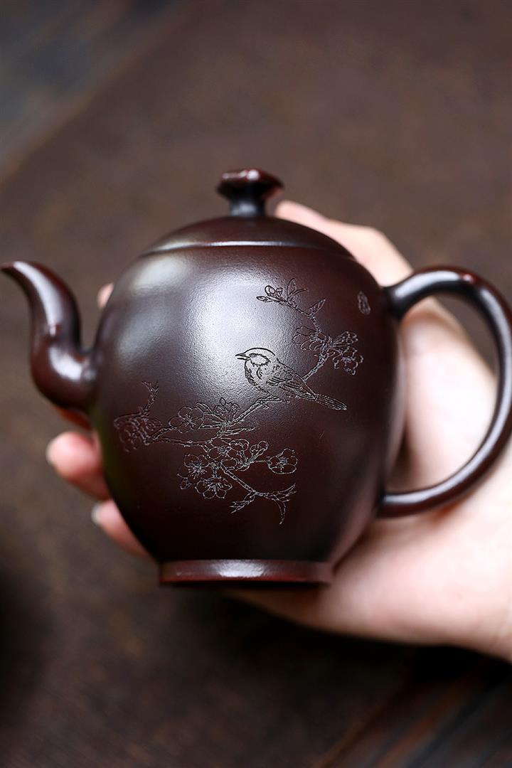 【作品介紹】此款壺形線條流暢,壺把,壺嘴,壺身壹氣呵成栩栩如生,是收藏把玩的好壺,泥料色澤古樸典雅,日久使用,漸露鋒芒,養成變化快,溫潤莊重,用其泡茶,使用的年代久,壺身就溫潤,泡出來的茶湯也就醇郁芳馨。