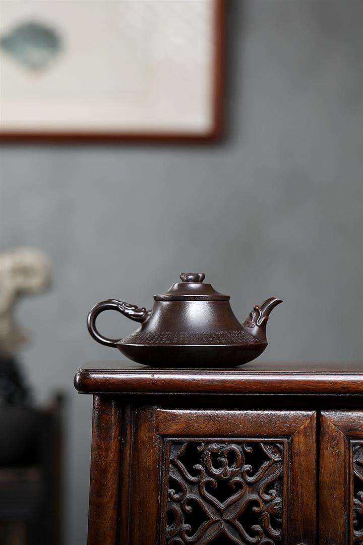 【作品介紹】此款壺形線條流暢,壺把,壺嘴,壺身壹氣呵成栩栩如生,是收藏把玩的好壺,泥料色澤古樸典雅,日久使用,漸露鋒芒,養成變化快,溫潤莊重,用其泡茶,使用的年代久,壺身就溫潤,泡出來的茶湯也就醇郁芳馨。