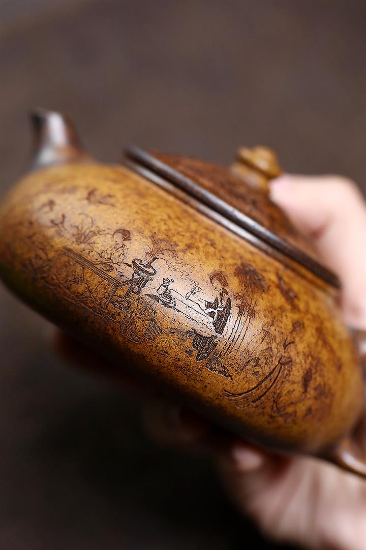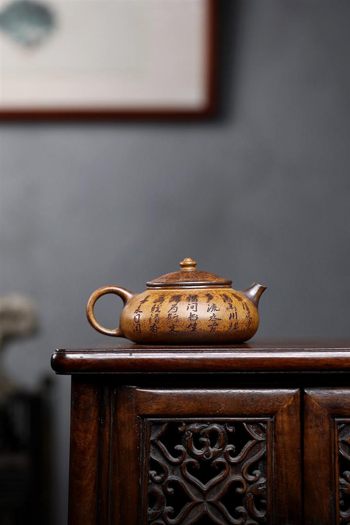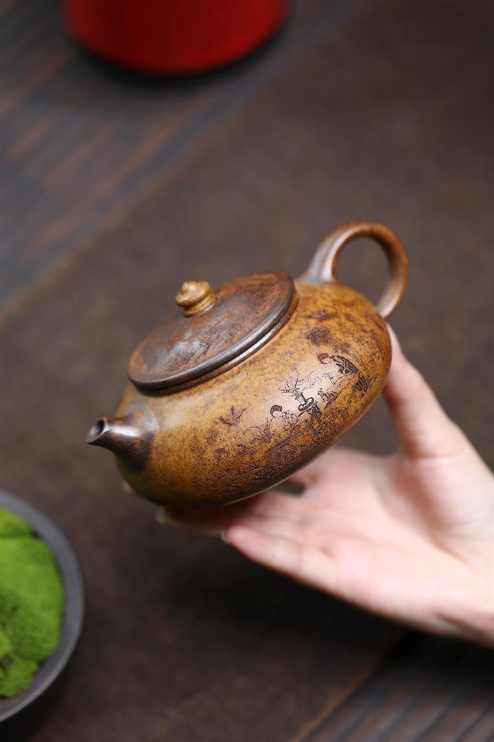 【作品介紹】此款壺形線條流暢,壺把,壺嘴,壺身壹氣呵成栩栩如生,是收藏把玩的好壺,泥料色澤古樸典雅,日久使用,漸露鋒芒,養成變化快,溫潤莊重,用其泡茶,使用的年代久,壺身就溫潤,泡出來的茶湯也就醇郁芳馨。