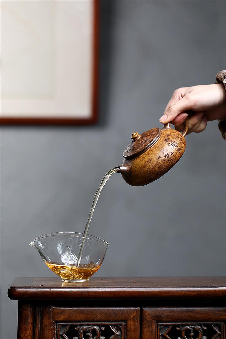【泥料特點】砂土氣重,似淳實農民,日久使用,漸露鋒芒,養成變化,溫潤莊重。紫砂是壹種雙重氣孔結構的多孔性材質,氣孔微細,密度高。用紫砂壺沏茶,不失原味,且香不渙散,得茶之真香真味。紫砂使用越久,壺身色澤越發光亮照人,氣韻溫雅。紫砂壺長久使用器身會因撫摸擦拭,變得越發溫潤光澤。
