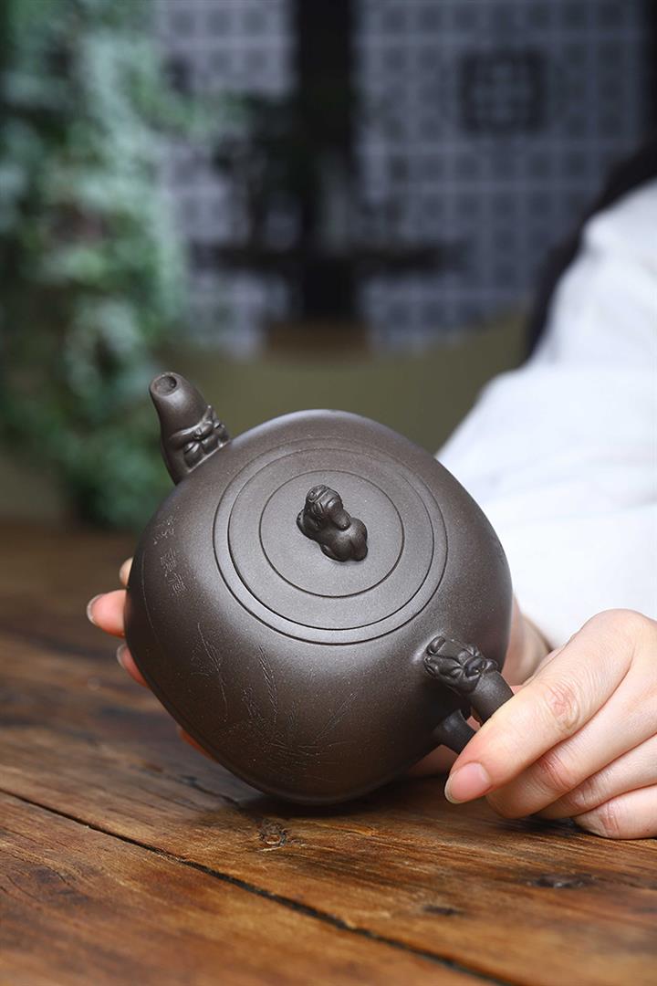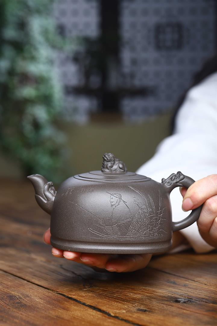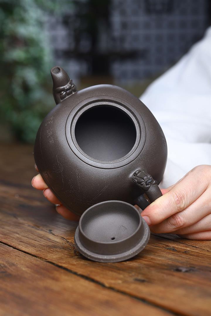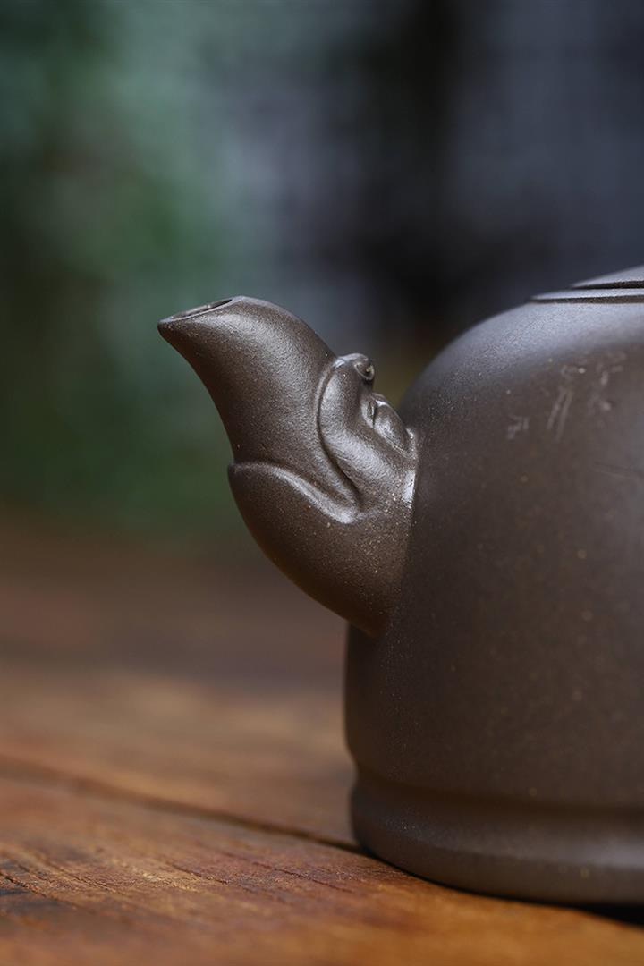 【作品介紹】此款壺形線條流暢,壺把,壺嘴,壺身壹氣呵成栩栩如生,是收藏把玩的好壺,泥料色澤古樸典雅,日久使用,漸露鋒芒,養成變化快,溫潤莊重,用其泡茶,使用的年代久,壺身就溫潤,泡出來的茶湯也就醇郁芳馨。
