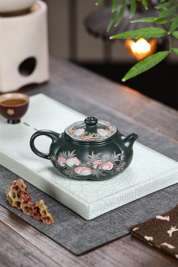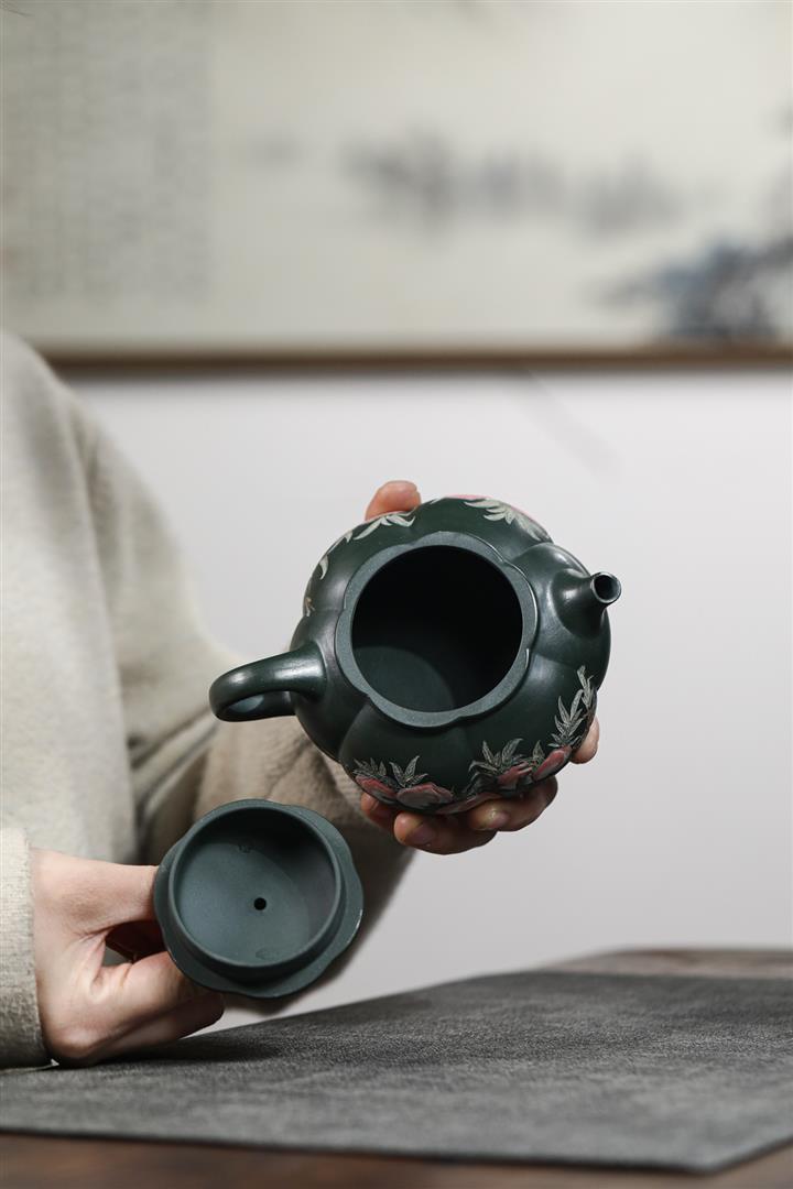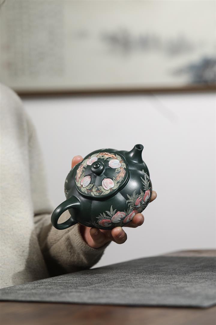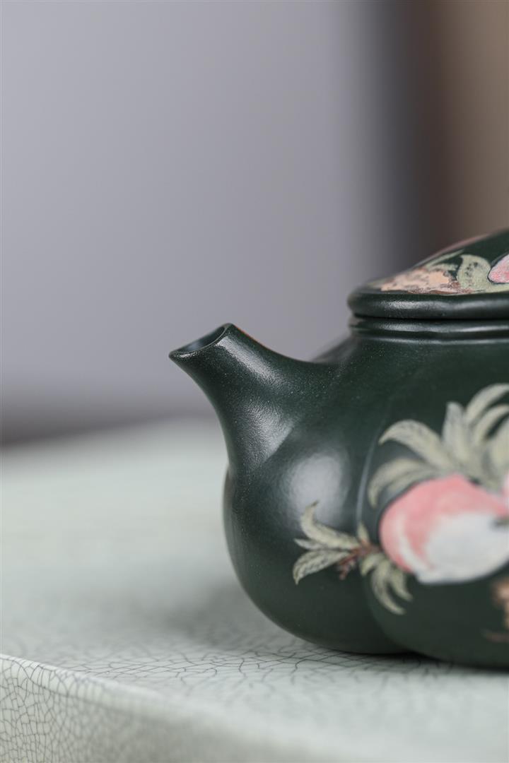 280cc原礦墨綠泥泥繪寒江茶壺POT8804