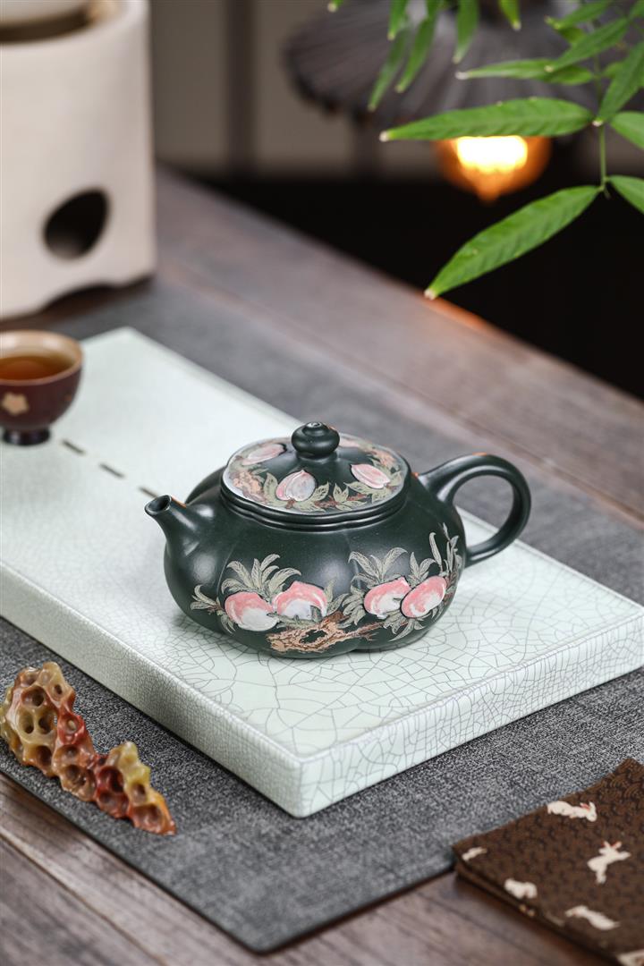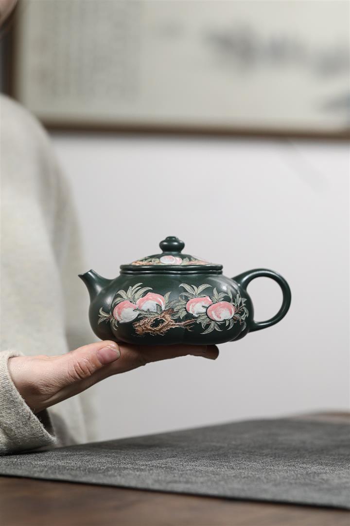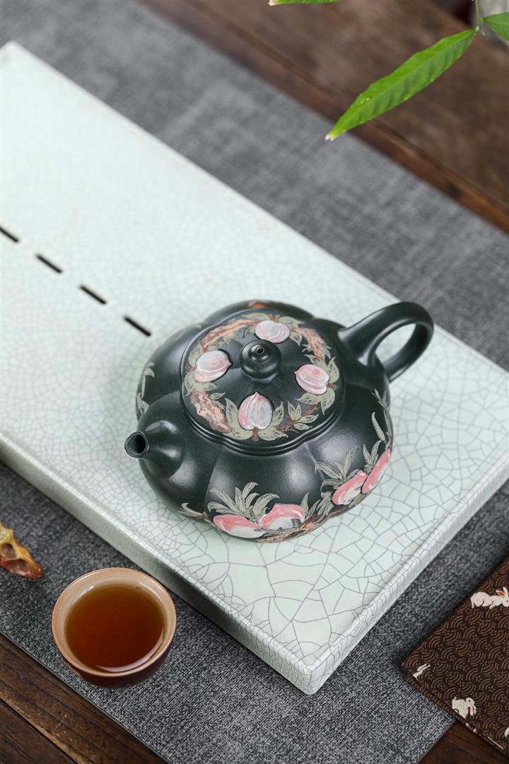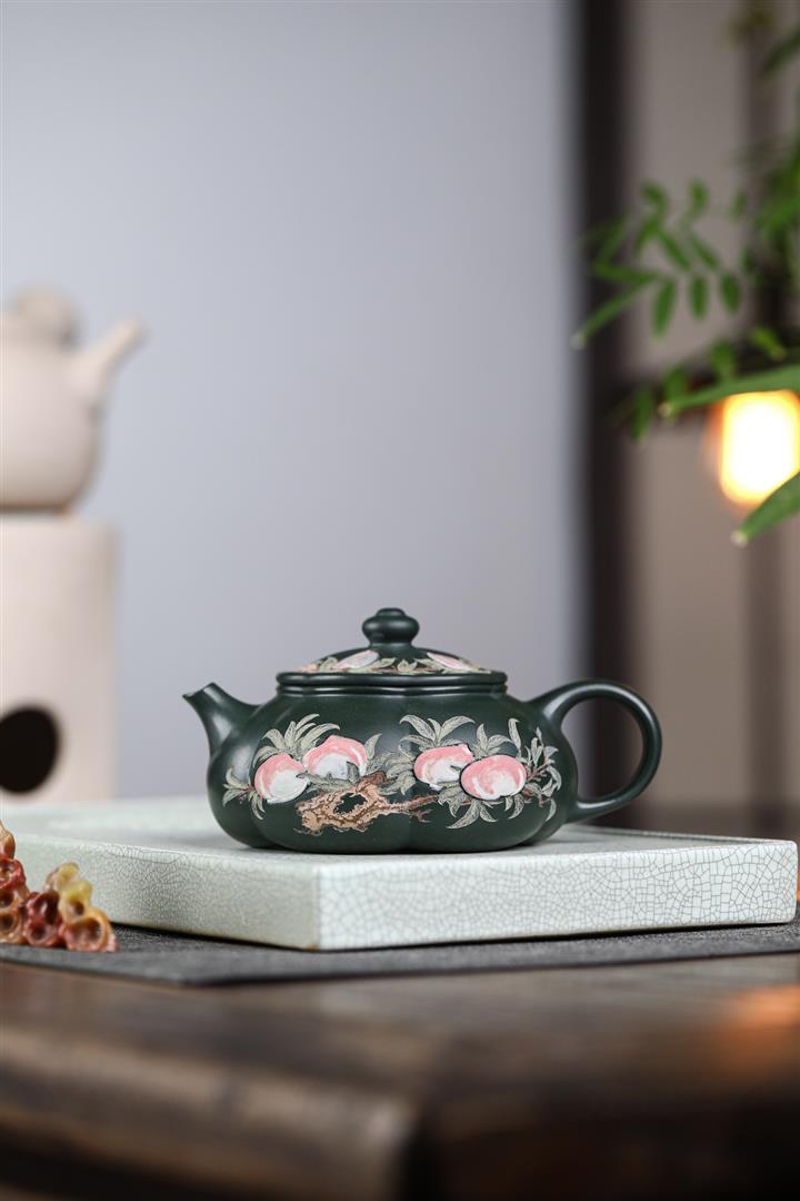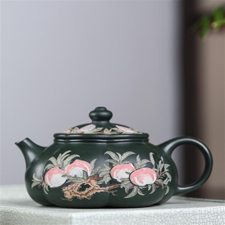 280cc原礦墨綠泥泥繪寒江茶壺POT8804
