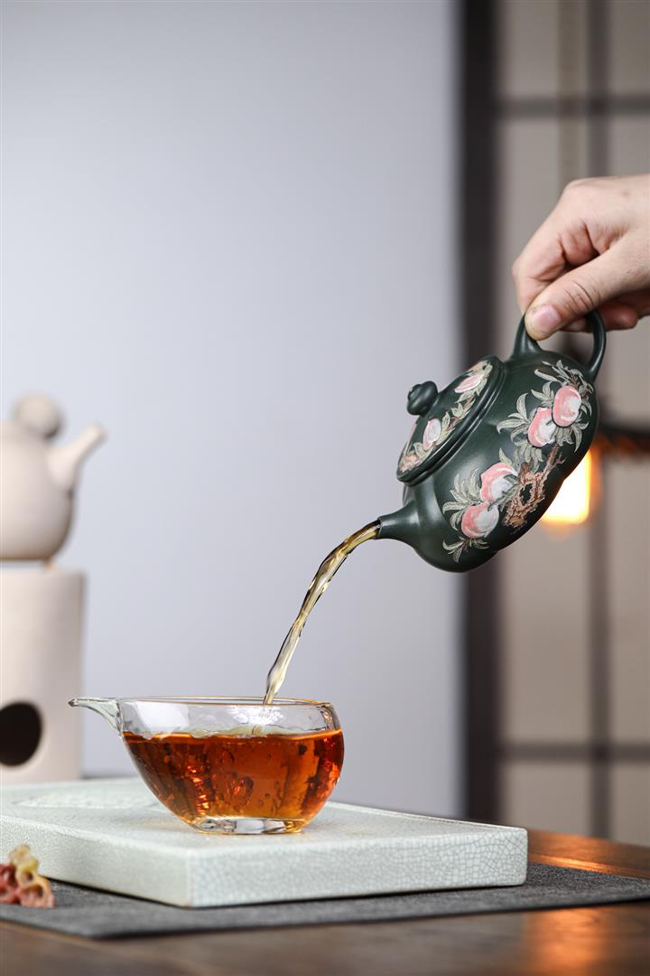 【泥料特點】砂土氣重,似淳實農民,日久使用,漸露鋒芒,養成變化,溫潤莊重。紫砂是壹種雙重氣孔結構的多孔性材質,氣孔微細,密度高。用紫砂壺沏茶,不失原味,且香不渙散,得茶之真香真味。紫砂使用越久,壺身色澤越發光亮照人,氣韻溫雅。紫砂壺長久使用器身會因撫摸擦拭,變得越發溫潤光澤。