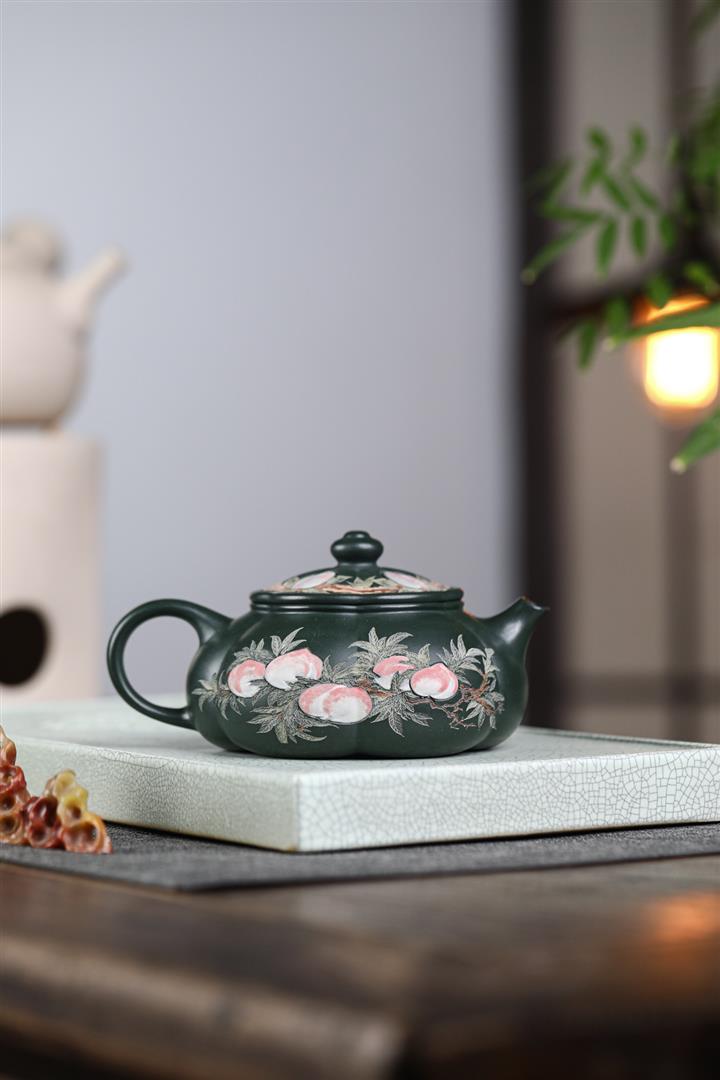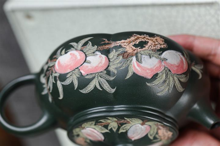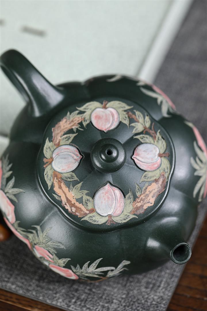 160cc翡翠綠泥描金寶相花-寒江茶壺POT8811