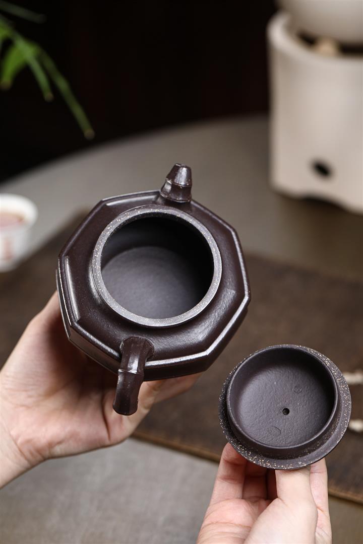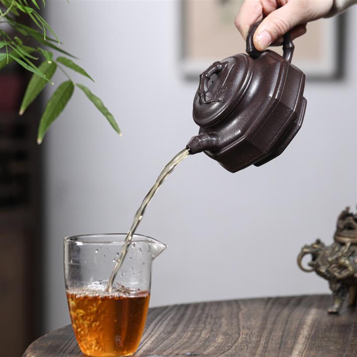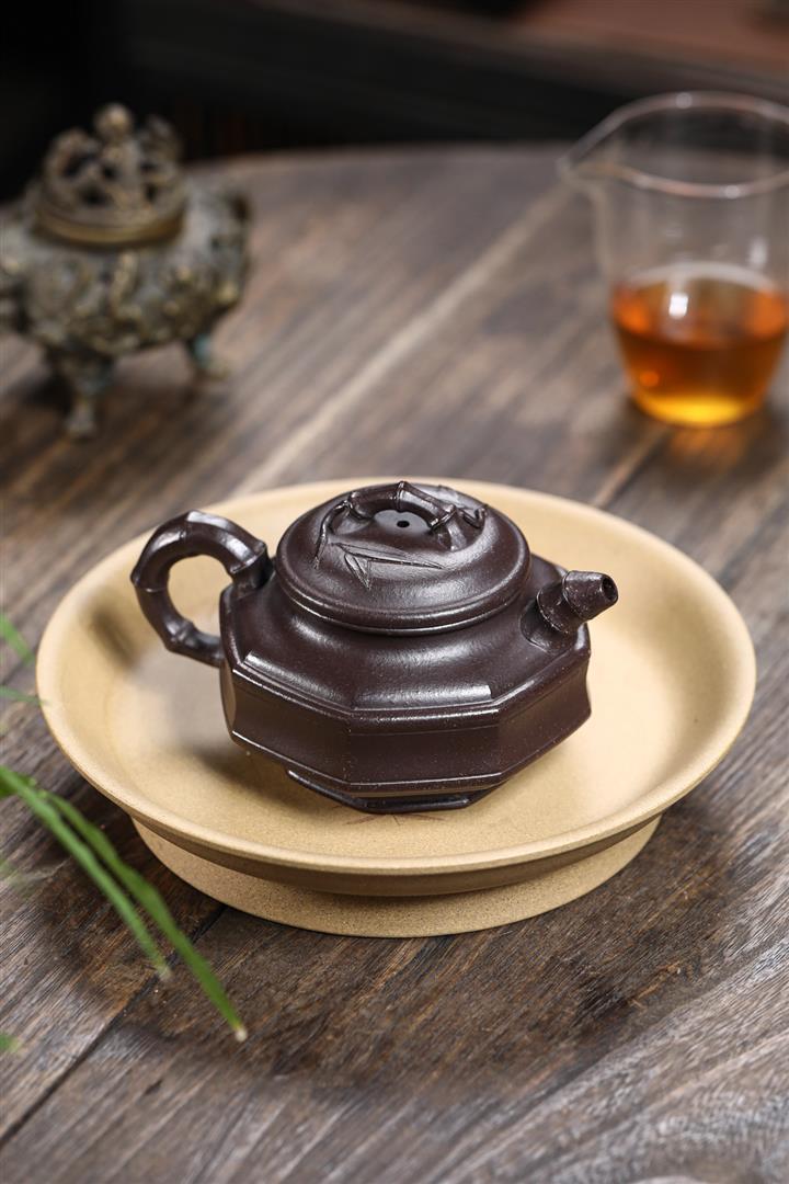 【泥料特點】砂土氣重,似淳實農民,日久使用,漸露鋒芒,養成變化,溫潤莊重。紫砂是壹種雙重氣孔結構的多孔性材質,氣孔微細,密度高。用紫砂壺沏茶,不失原味,且香不渙散,得茶之真香真味。紫砂使用越久,壺身色澤越發光亮照人,氣韻溫雅。紫砂壺長久使用器身會因撫摸擦拭,變得越發溫潤光澤。