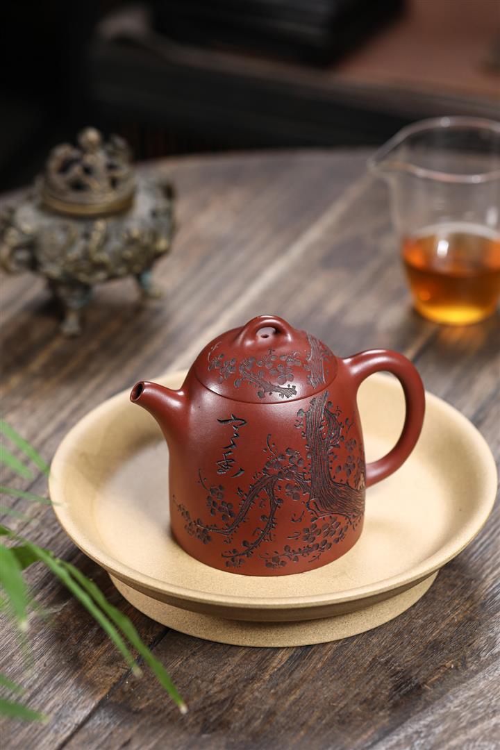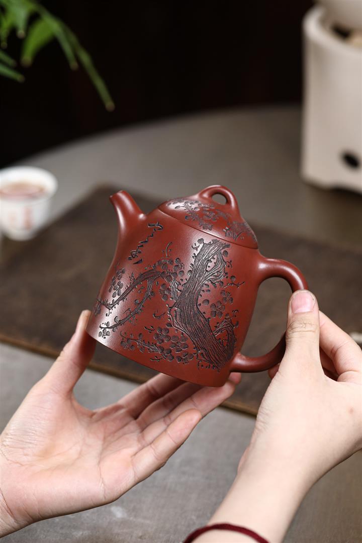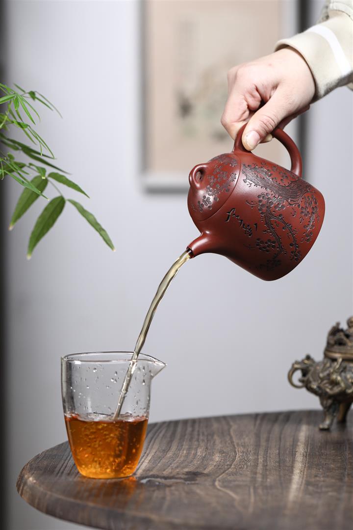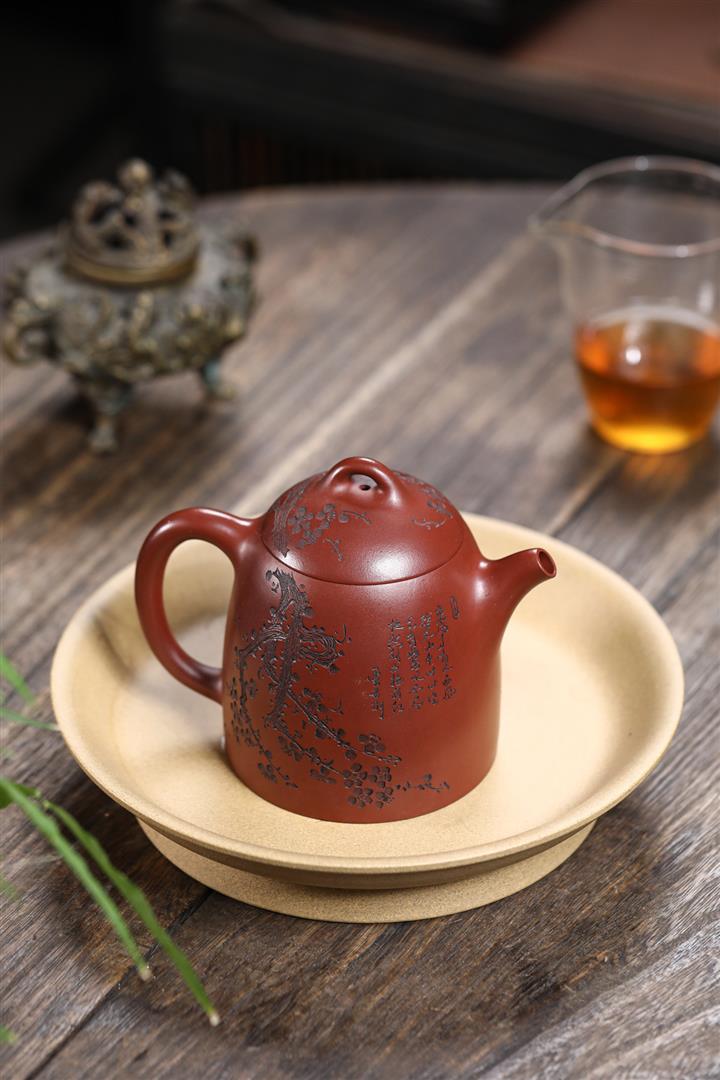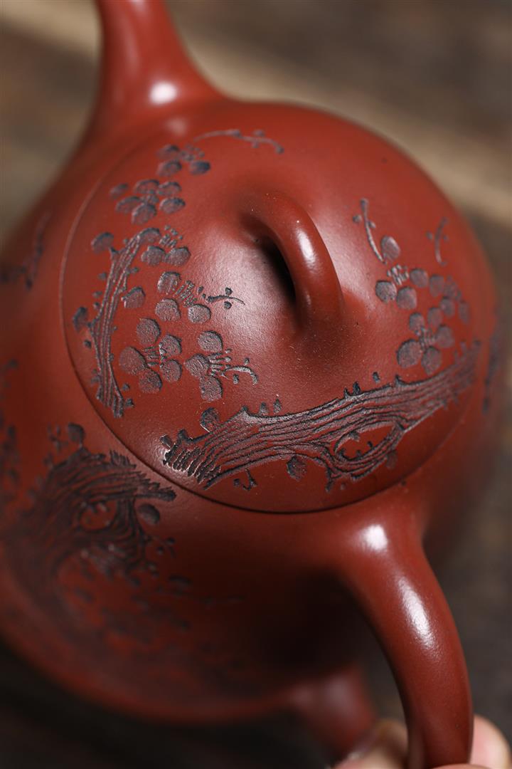 【泥料特點】砂土氣重,似淳實農民,日久使用,漸露鋒芒,養成變化,溫潤莊重。紫砂是壹種雙重氣孔結構的多孔性材質,氣孔微細,密度高。用紫砂壺沏茶,不失原味,且香不渙散,得茶之真香真味。紫砂使用越久,壺身色澤越發光亮照人,氣韻溫雅。紫砂壺長久使用器身會因撫摸擦拭,變得越發溫潤光澤。