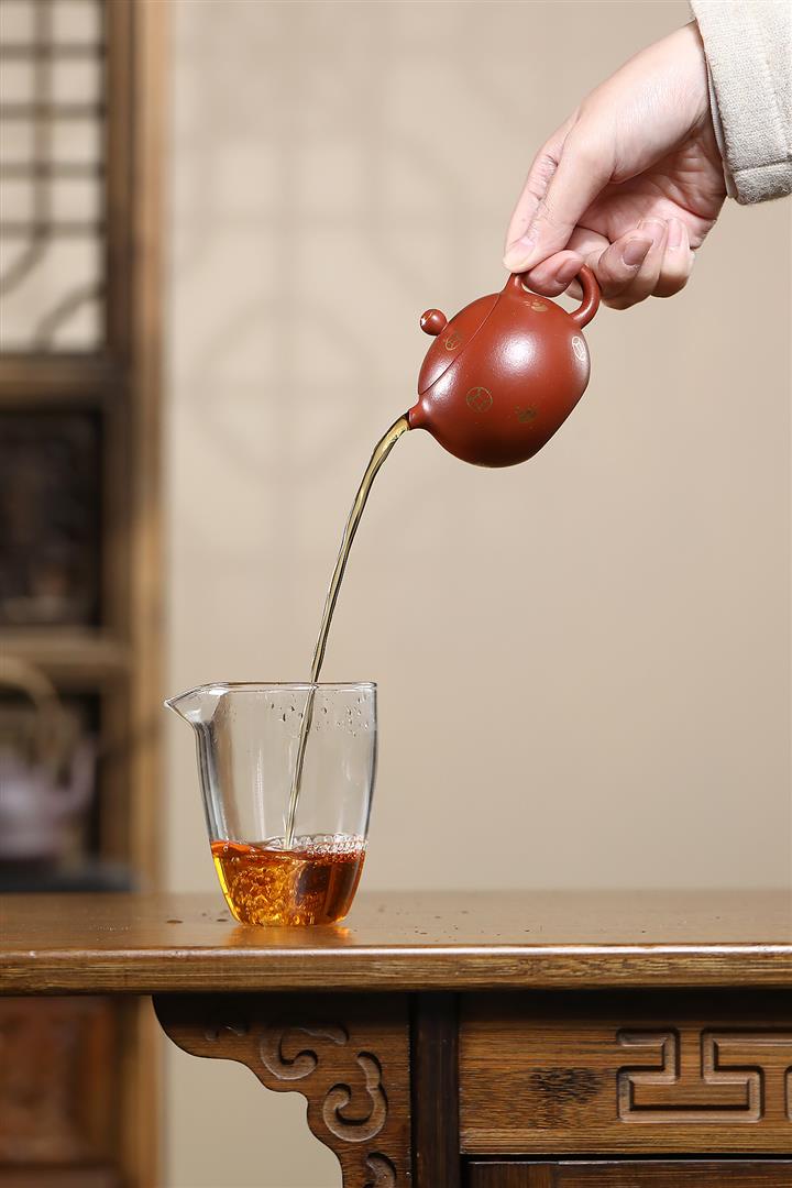 【泥料特點】砂土氣重,似淳實農民,日久使用,漸露鋒芒,養成變化,溫潤莊重。紫砂是壹種雙重氣孔結構的多孔性材質,氣孔微細,密度高。用紫砂壺沏茶,不失原味,且香不渙散,得茶之真香真味。紫砂使用越久,壺身色澤越發光亮照人,氣韻溫雅。紫砂壺長久使用器身會因撫摸擦拭,變得越發溫潤光澤。