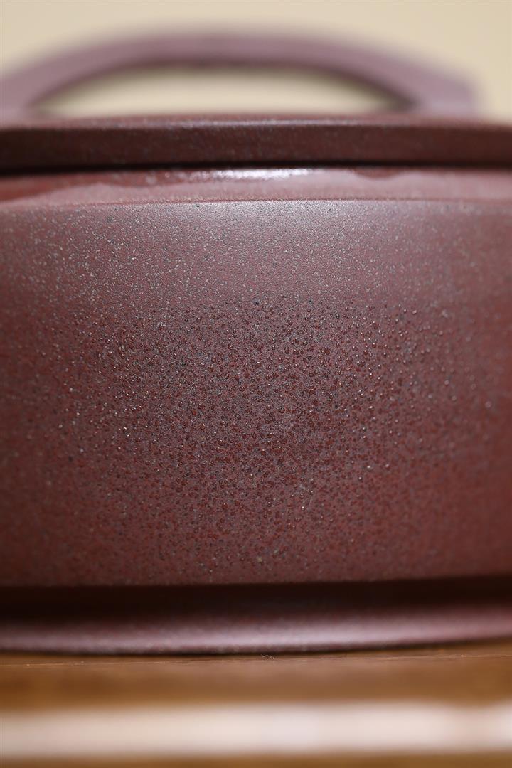 【泥料特點】砂土氣重,似淳實農民,日久使用,漸露鋒芒,養成變化,溫潤莊重。紫砂是壹種雙重氣孔結構的多孔性材質,氣孔微細,密度高。用紫砂壺沏茶,不失原味,且香不渙散,得茶之真香真味。紫砂使用越久,壺身色澤越發光亮照人,氣韻溫雅。紫砂壺長久使用器身會因撫摸擦拭,變得越發溫潤光澤。