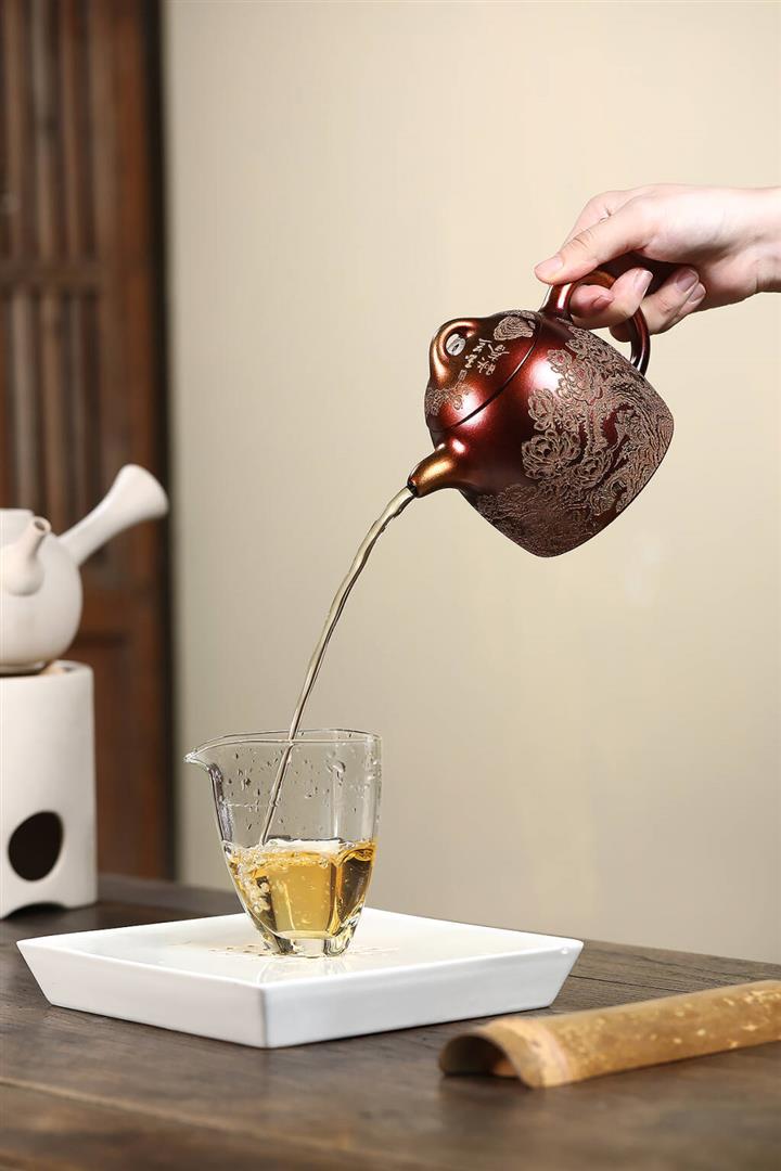 【泥料特點】砂土氣重,似淳實農民,日久使用,漸露鋒芒,養成變化,溫潤莊重。紫砂是壹種雙重氣孔結構的多孔性材質,氣孔微細,密度高。用紫砂壺沏茶,不失原味,且香不渙散,得茶之真香真味。紫砂使用越久,壺身色澤越發光亮照人,氣韻溫雅。紫砂壺長久使用器身會因撫摸擦拭,變得越發溫潤光澤。