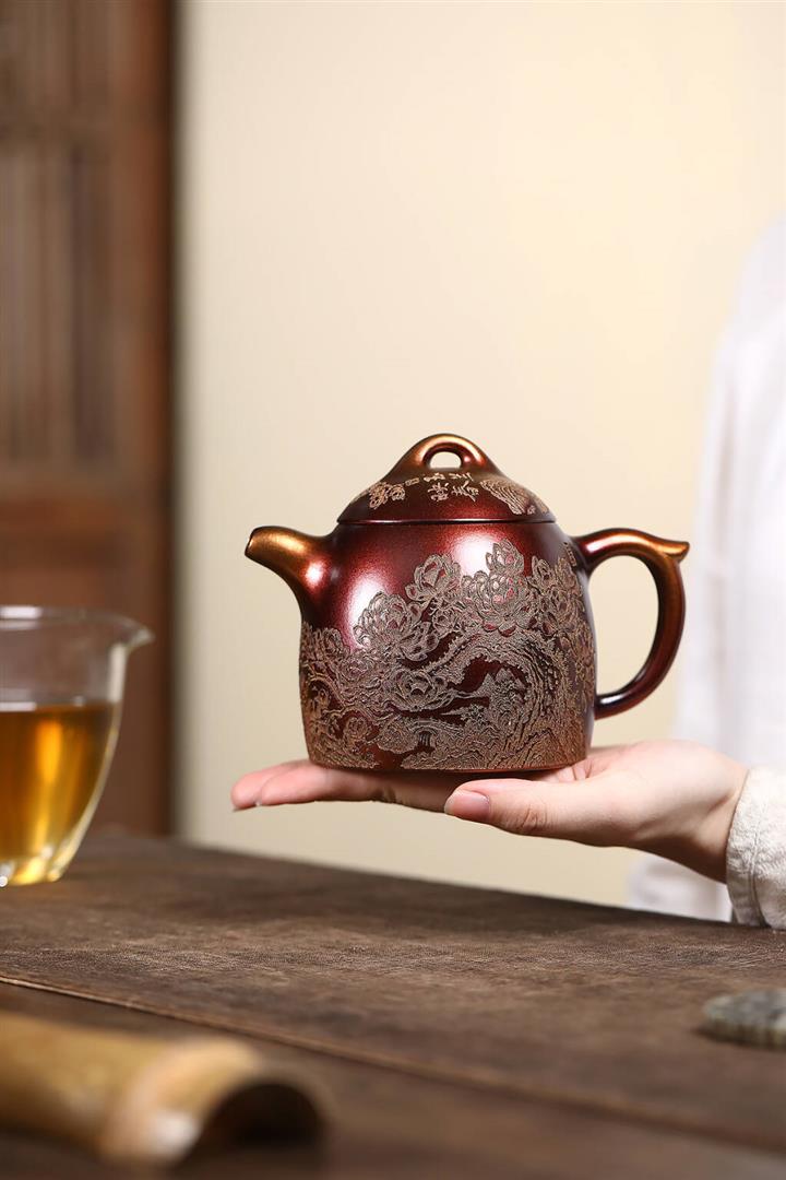 300cc原礦紫泥古法貝殼燒蒼龍出海茶壺POT8834