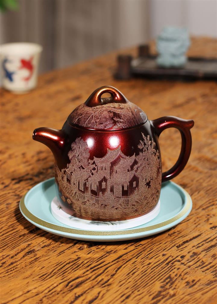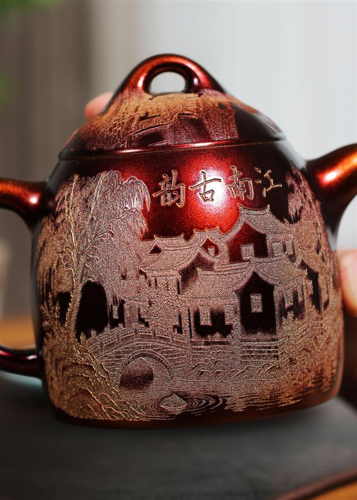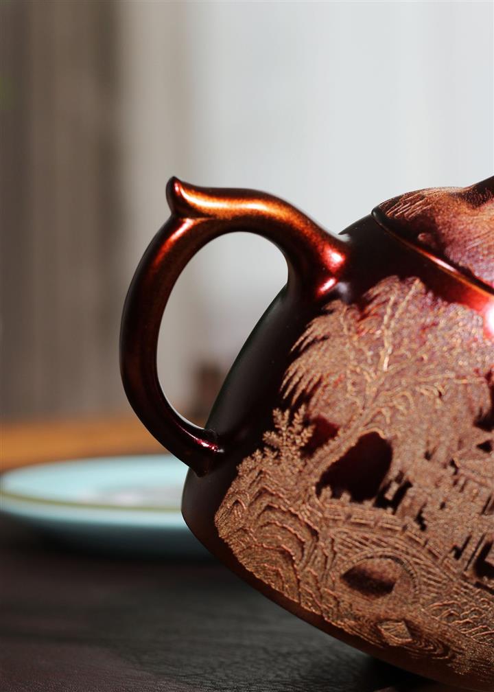 【泥料特點】砂土氣重,似淳實農民,日久使用,漸露鋒芒,養成變化,溫潤莊重。紫砂是壹種雙重氣孔結構的多孔性材質,氣孔微細,密度高。用紫砂壺沏茶,不失原味,且香不渙散,得茶之真香真味。紫砂使用越久,壺身色澤越發光亮照人,氣韻溫雅。紫砂壺長久使用器身會因撫摸擦拭,變得越發溫潤光澤。