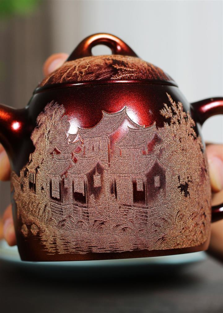 【作品介紹】此款壺形線條流暢,壺把,壺嘴,壺身壹氣呵成栩栩如生,是收藏把玩的好壺,泥料色澤古樸典雅,日久使用,漸露鋒芒,養成變化快,溫潤莊重,用其泡茶,使用的年代久,壺身就溫潤,泡出來的茶湯也就醇郁芳馨。