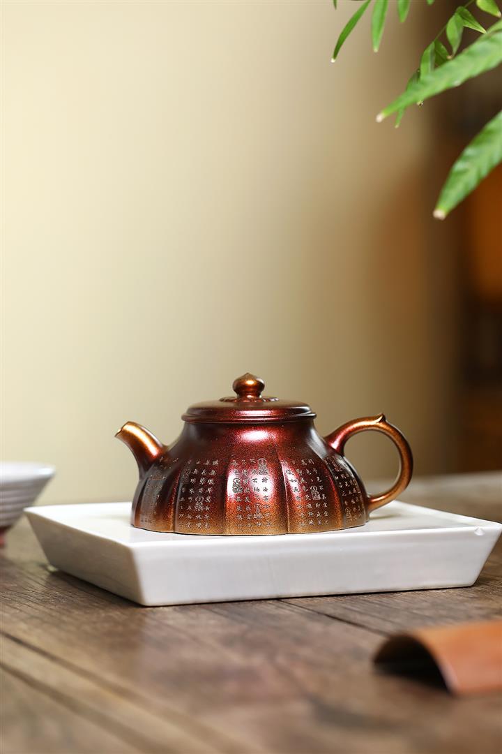 【泥料特點】砂土氣重,似淳實農民,日久使用,漸露鋒芒,養成變化,溫潤莊重。紫砂是壹種雙重氣孔結構的多孔性材質,氣孔微細,密度高。用紫砂壺沏茶,不失原味,且香不渙散,得茶之真香真味。紫砂使用越久,壺身色澤越發光亮照人,氣韻溫雅。紫砂壺長久使用器身會因撫摸擦拭,變得越發溫潤光澤。