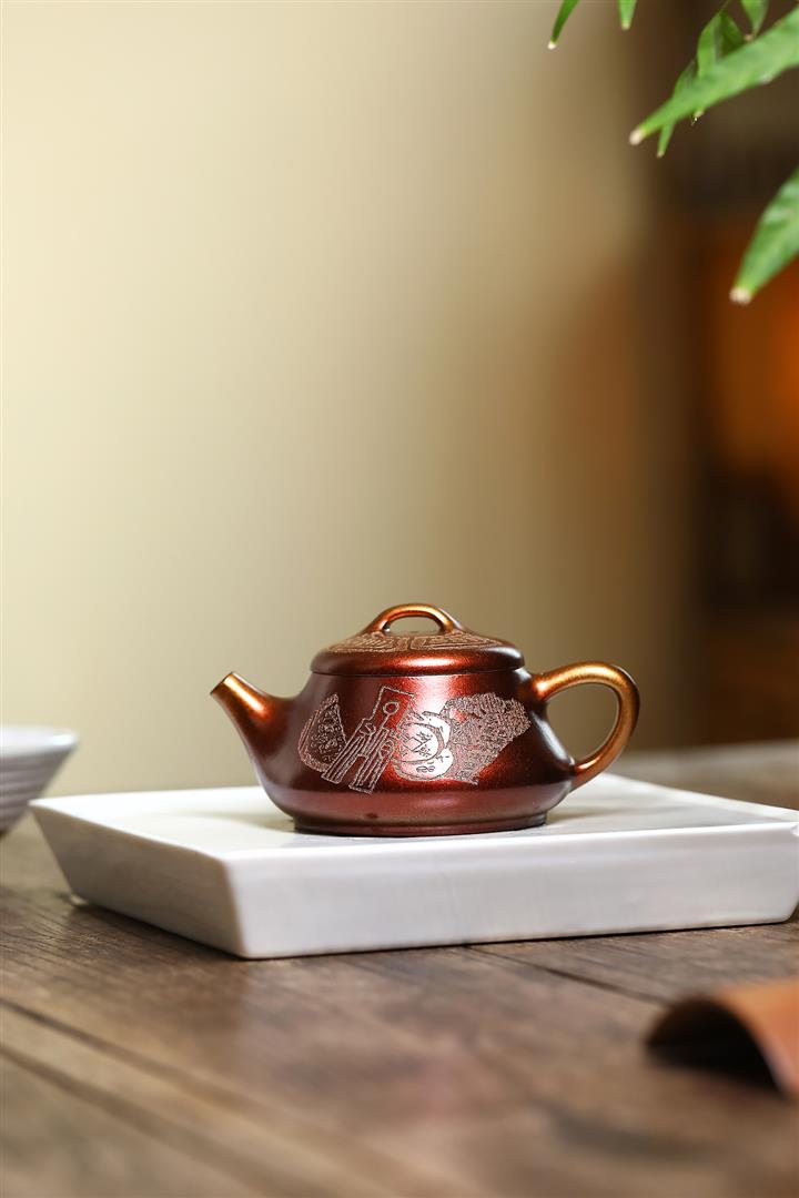 220cc原礦龍血砂貝殼燒百福景舟石瓢茶壺POT8835