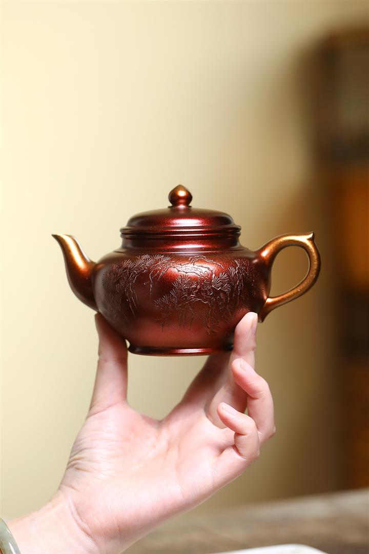 【作品介紹】此款壺形線條流暢,壺把,壺嘴,壺身壹氣呵成栩栩如生,是收藏把玩的好壺,泥料色澤古樸典雅,日久使用,漸露鋒芒,養成變化快,溫潤莊重,用其泡茶,使用的年代久,壺身就溫潤,泡出來的茶湯也就醇郁芳馨。