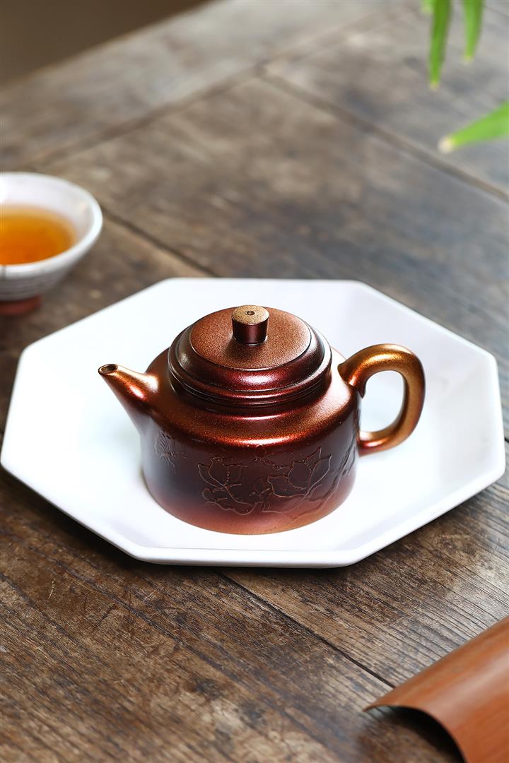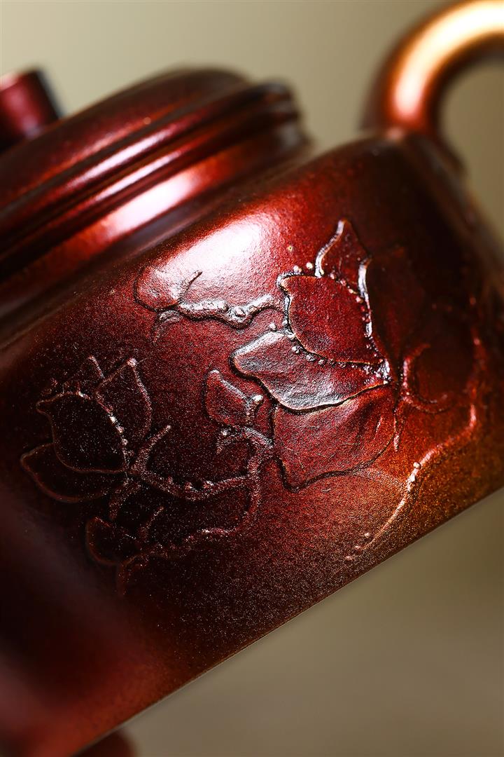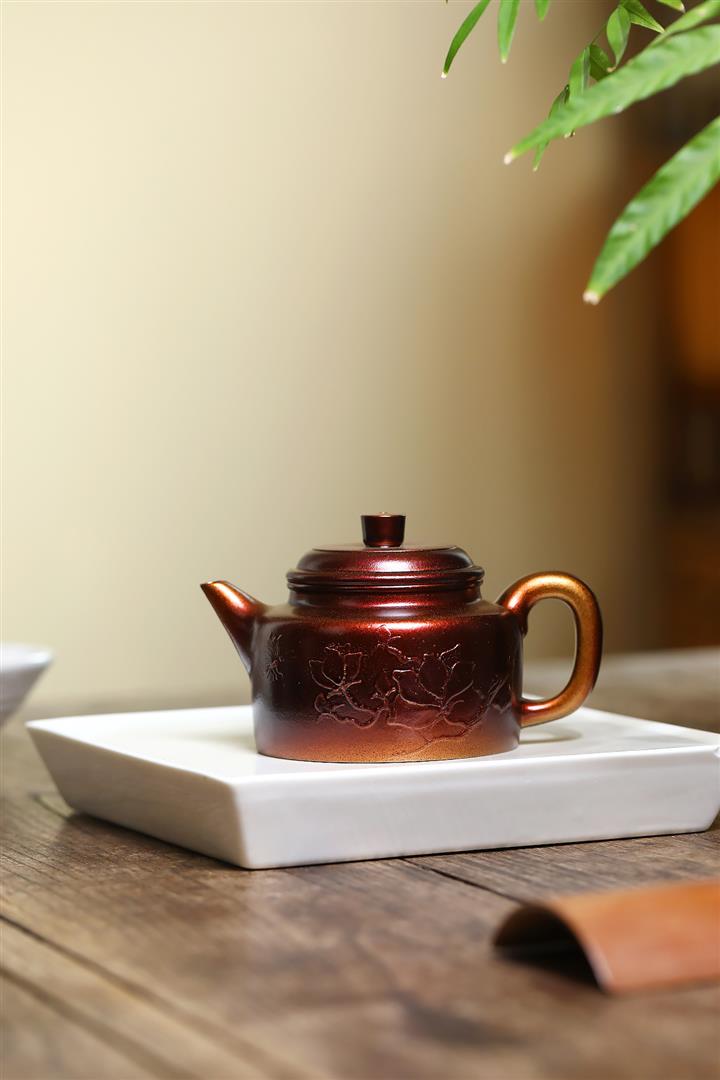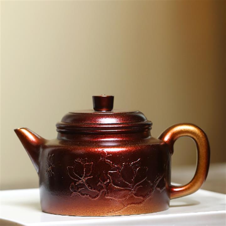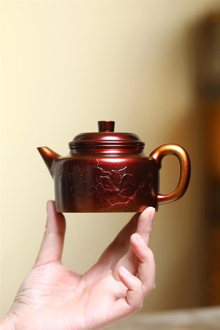 250cc原礦黃金段泥火焰燒焰生牡丹茶壺POT8845