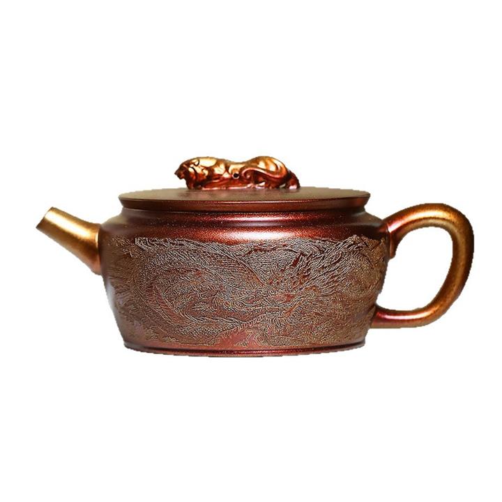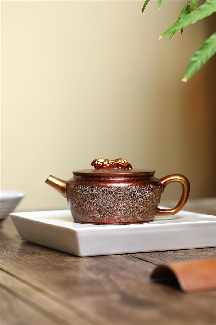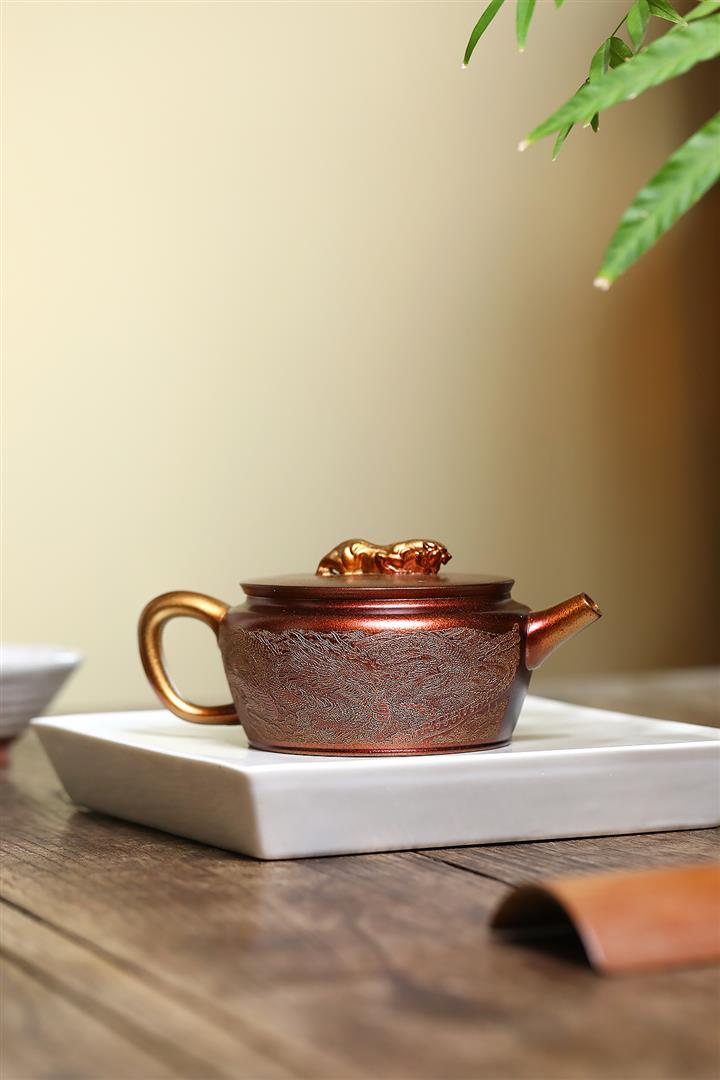 250cc原礦黃金段泥火焰燒焰生牡丹茶壺POT8845