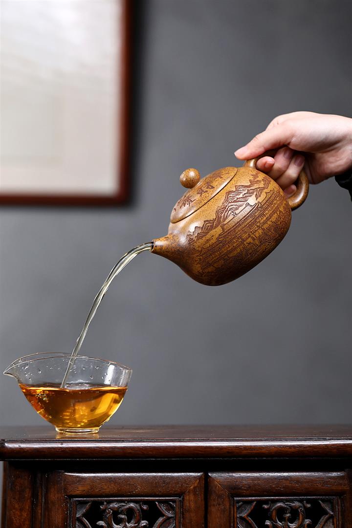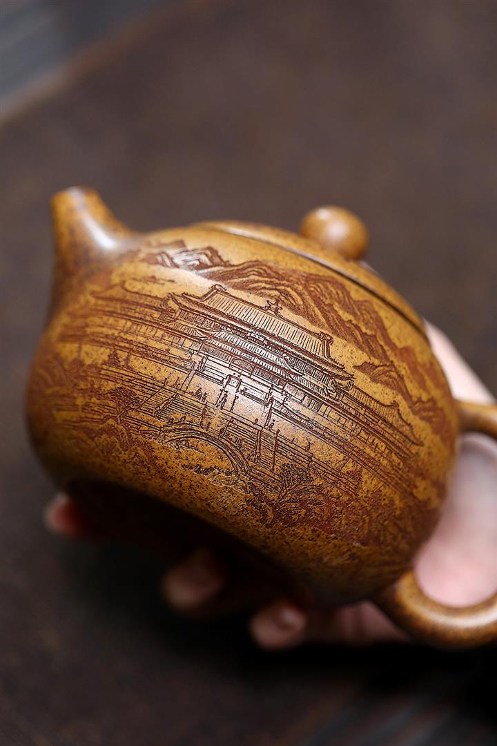 【作品介紹】此款壺形線條流暢,壺把,壺嘴,壺身壹氣呵成栩栩如生,是收藏把玩的好壺,泥料色澤古樸典雅,日久使用,漸露鋒芒,養成變化快,溫潤莊重,用其泡茶,使用的年代久,壺身就溫潤,泡出來的茶湯也就醇郁芳馨。
